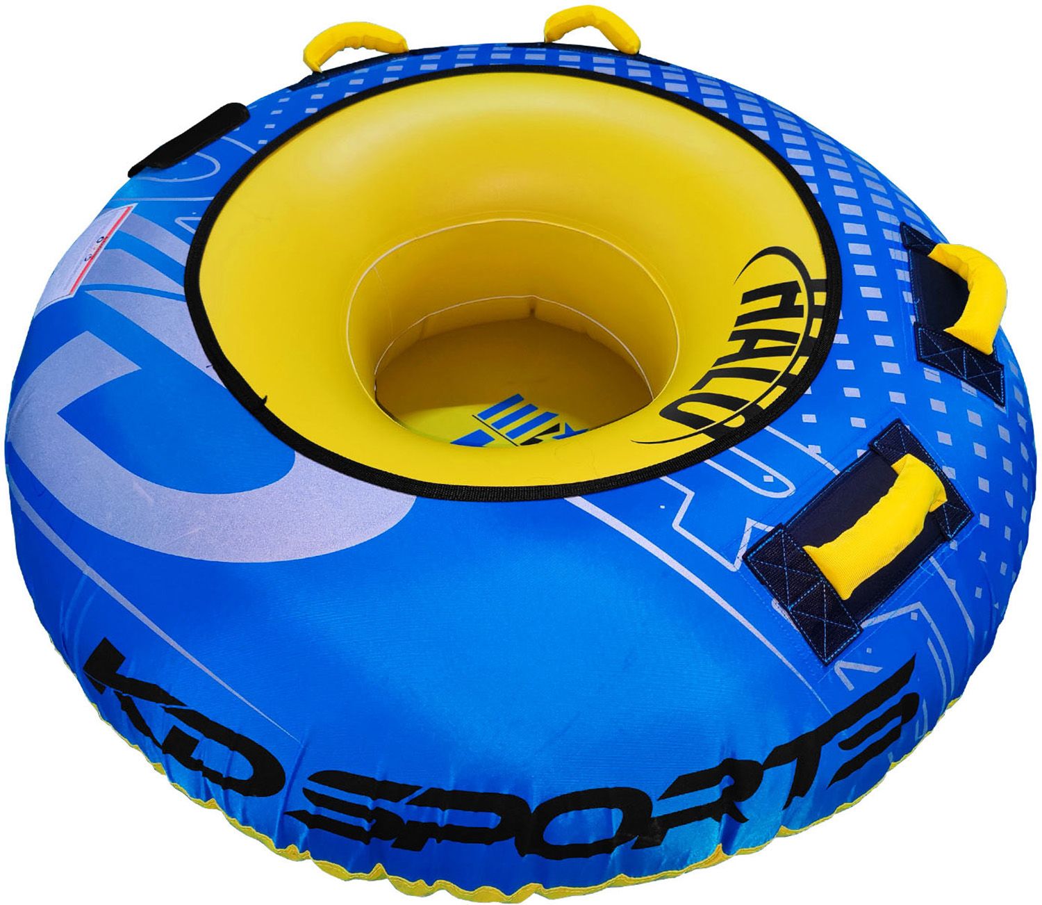 The KD Halo is a modern twist on the timeless classic donut tube that is guaranteed to provide hours of summer fun. The KD Halo is built using a heavy-duty virgin PVC inner that’s partially wrapped in a 420-denier nylon cover to save on weight and minimise drag to have you skipping round the lake. The larger 54” diameter and extra set of handles gives riders the option to either sit in or lay down. The Halo comes water ready with a matching 1P tube rope, that easily slides into the reinforced webbing quick connect, while the two-way Boston valve makes inflation and deflation a breeze. The all-new KD Halo is over spec’d and under-priced so you can afford to run doubles or even triples tubes so that all your friends to battle it out behind the boat this summer.