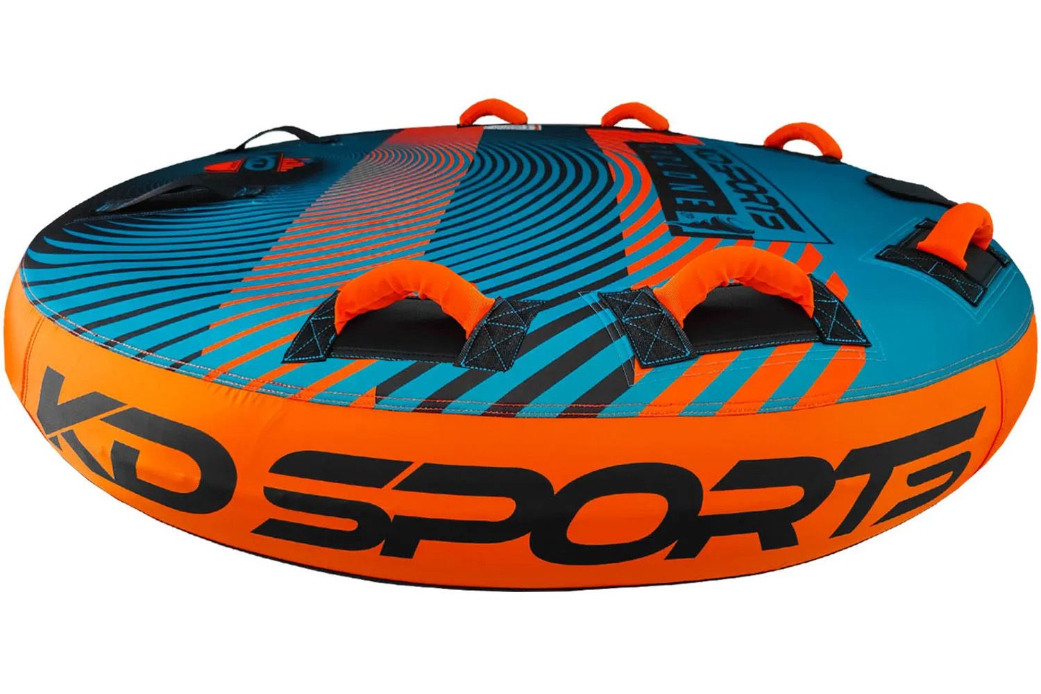 With its low-profile design, the KD Cyclone is one of the hardest charging two person tubes on the market thanks to giant 60” diameter it gives both riders heaps of space and helps to avoid accidental collisions. Never one to skimp on quality, KD Sports have used a three-piece construction with their Cyclone’s heavy duty 820denier cover, this strengthens seams and reduces the likelihood of splitting edges. Determined to add further value, KD have done away with the tiny neoprene panels and instead upgraded the KD Cyclone to a full neoprene top deck, not only does it look amazing, but it eliminates the chances of getting any tube rash as you’re whipped back and forth down the lake. The KD Cyclone is proven crowd favourite tube that’s just gotten bigger and better!