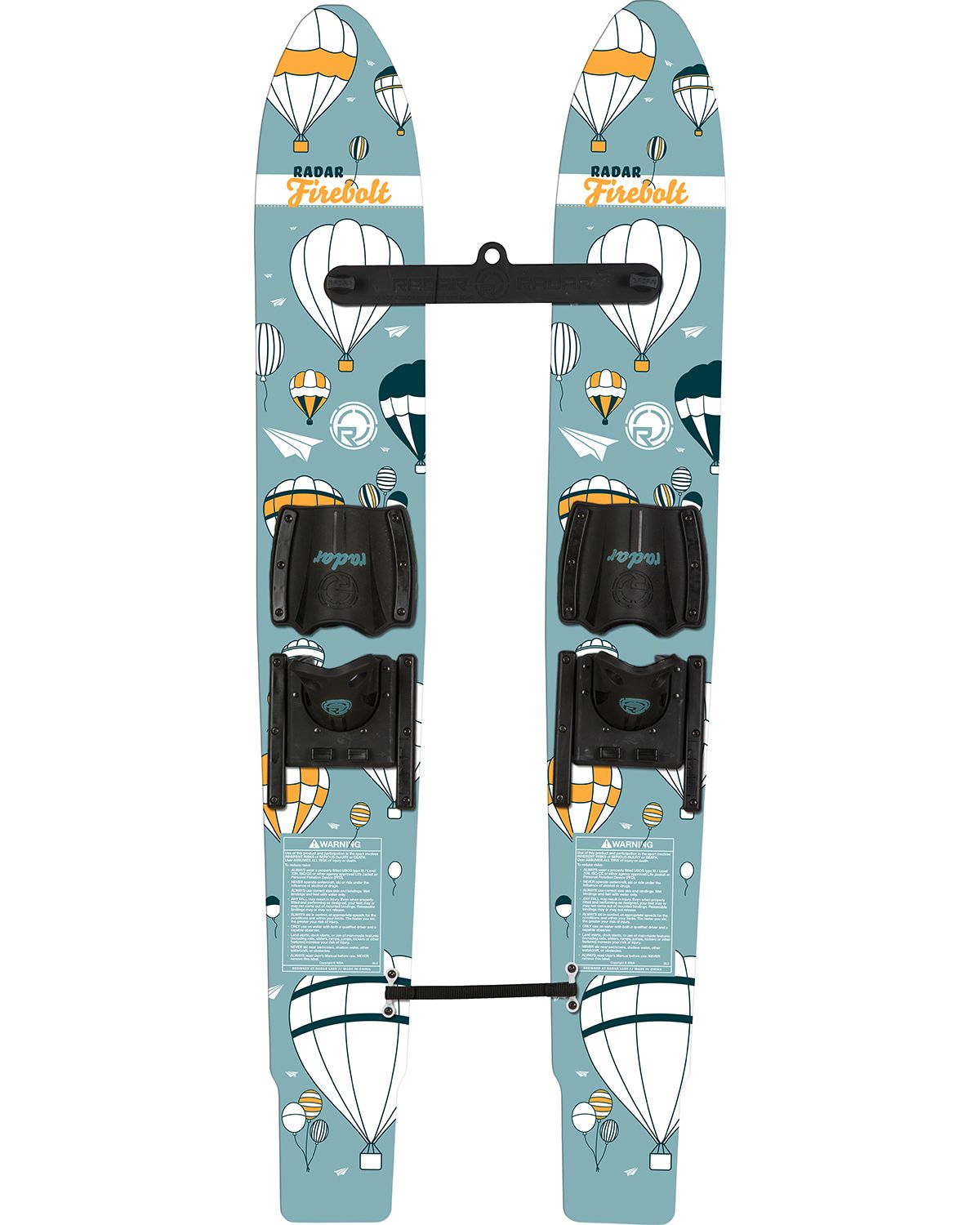 The Firebolts are a scaled version of the X-Calibers, taking advantage of everything we expect from the skis designed for big kids behind the boat. A detachable stabilizer bar helps maintain proper ski spacing, improving balance and control while learning. Adjustable horseshoe bindings and a specially designed training rope with two handles (one for child and the other for the boat) complete the set.