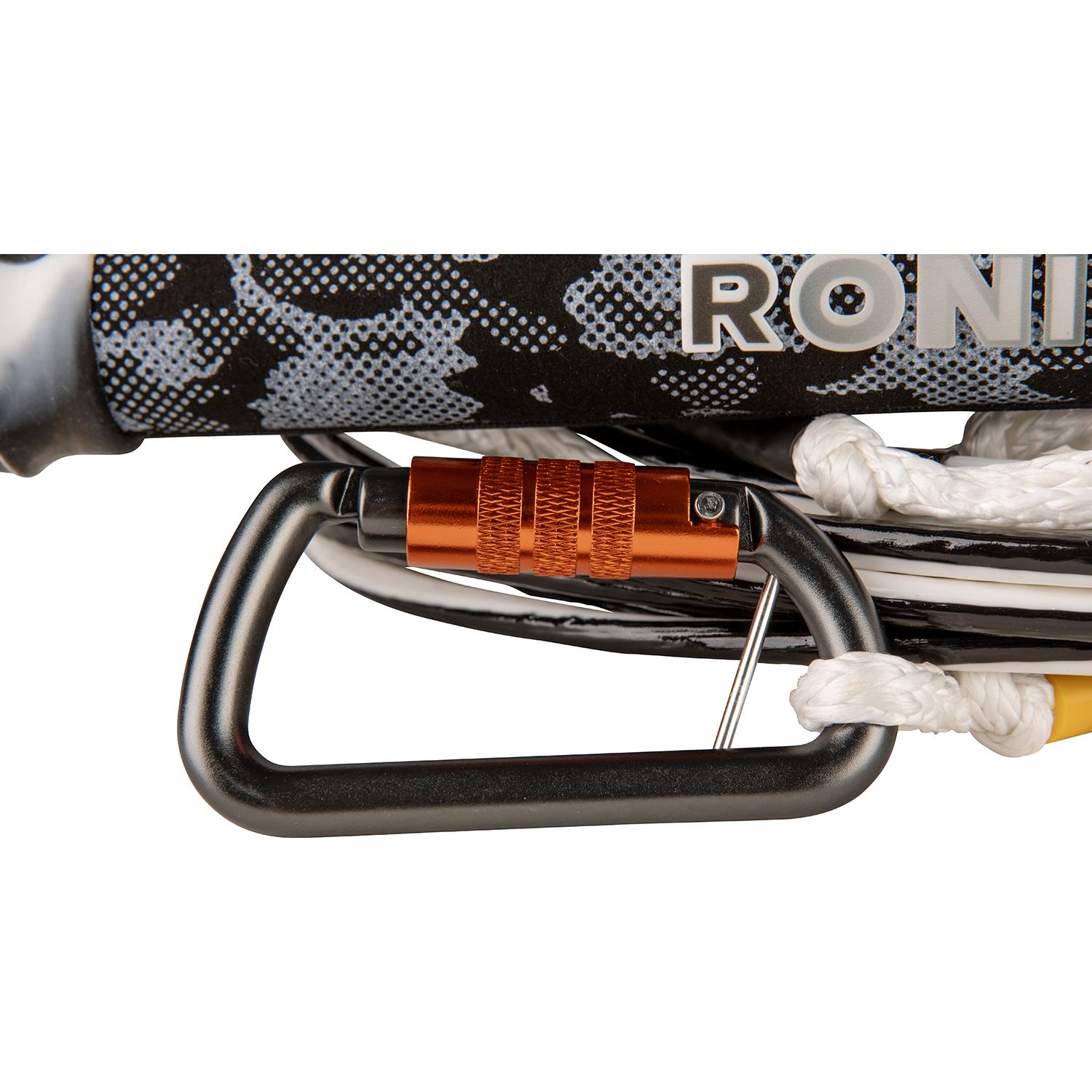 For those of us that are vertically challenged or have a Bimini that’s too far away from the tower pylon. We have the perfect solution for you, our new quick connect carabiner that’s near the Bimini edge to help set your perfect rope length or switch out your wake-to-surf-to-foil ropes in a snap. That’s not all, this Quick Connect Spinner comes packaged with our most high-end, non-stretch, PVC coated surf rope and handle.