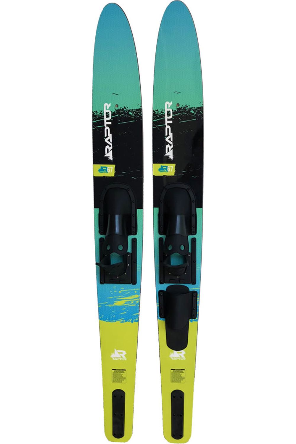 Combo skis are designed for beginners and come in pairs with a front boot on each and a rear toe plate on one, giving the skier the ability to drop a ski and slalom. Most combo skis include traditional adjustable horse-shoe style binding systems however premium models feature a supportive, comfortable boot system. While nearly all adult combo’s include inserts for a trainer bar to be added later, kid’s trainers come with the trainer bar, rope and handle included. Combo skis are available in varying widths of narrow and wide. Wide combos with more surface area will provide easier deep water starts and more straight-line stability once up. Narrow combo’s will be nimbler once skiing.