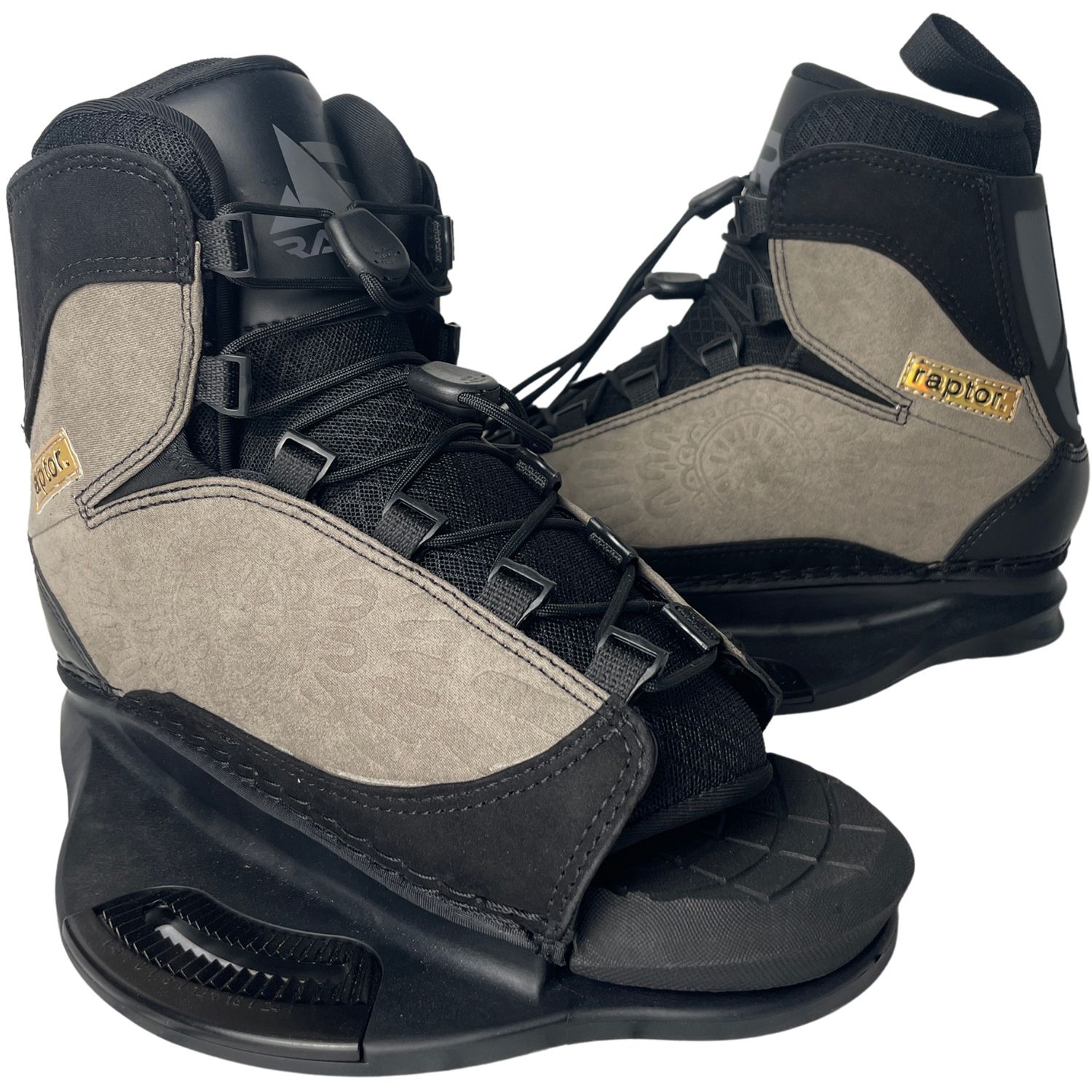 All new for 2023 is the Haze. With dual lace functionality for adjustment, a soft neoprene backed tongue, J bars to lock in the heel, and a tri density foam, the Haze binding pairs perfectly with Raptor's Liteside wakeboard, or is a great alternative if you are looking to upgrade your old wakeboard boots.