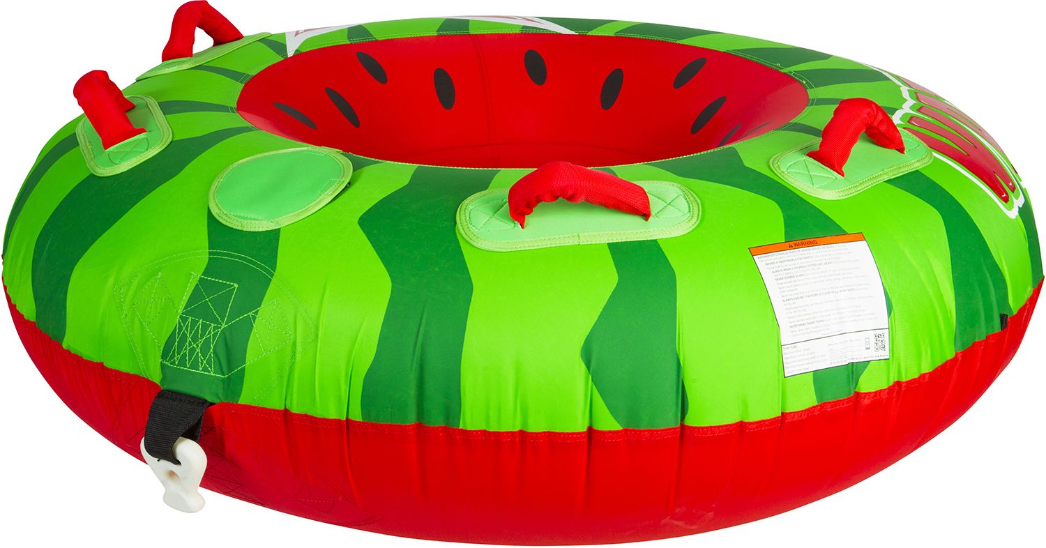 The Watermelon is a single rider, classic donut shaped tube that was designed with FUN in mind. Sit in the Watermelon with your feet in front of you or lay on your belly to put yourself in the heart of the action. The Watermelon has a full nylon cover for unmatched durability and 2 sets of handles in just the right spot for either riding style. You will enjoy ultimate comfort with soft foam handles with built in knuckle guards. The 2-Way Boston valve makes inflation and deflation a snap and you’re sure to turn heads with this cool fruit inspired design. Get yourself a Watermelon and grab your slice of the fun!
