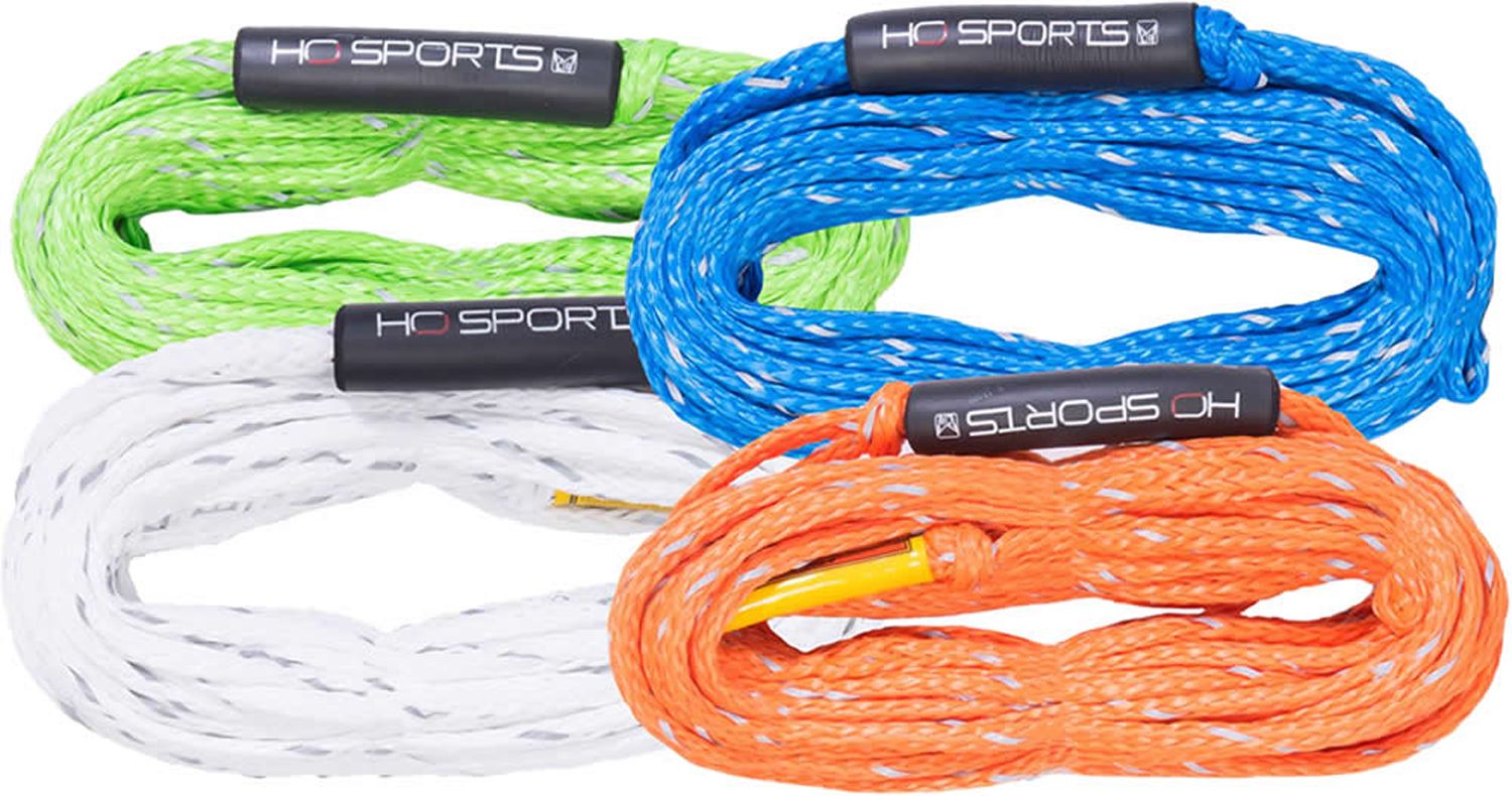 As safety is your first priority, HO have added some key safety features to our new tube rope offerings that only add to the fun. The neoprene core allows the rope to float atop the water for better visibility and less chance for hang-ups on unseen objects that may be in the water. In addition, they can be easily seen with a reflective fleck in the rope weave. The 2k Tube Rope is a 60 foot long rope designed for 1 or 2 rider tubes or 2,300 pounds of average tensile strength. It has a maximum of 2 people or roughly 340 rider pounds and is a great lightweight rope for small tubes and tubers.