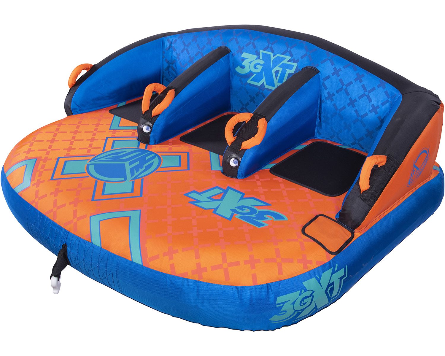 The name says it all – 3GXT. XT stands for Extra Tough. We spared no expense with this towable tube and we stand behind it with our INDUSTRY FIRST 3 YEAR LIMITED WARRANTY. Our customers asked for an “EXTRA TOUGH” version of our best seller 3G and we answered by building the XT with the thickest and toughest materials money can buy. Grab 2 of your friends and sit down in the ergonomic, lounge style seats OR flip the tube around and kneel on the neoprene pads while towing the tube from the opposite side…either way works great! Made from only the finest materials and backed by HO's 3 year limited warranty, the 3GXT will keep you where you want to be…on the water!