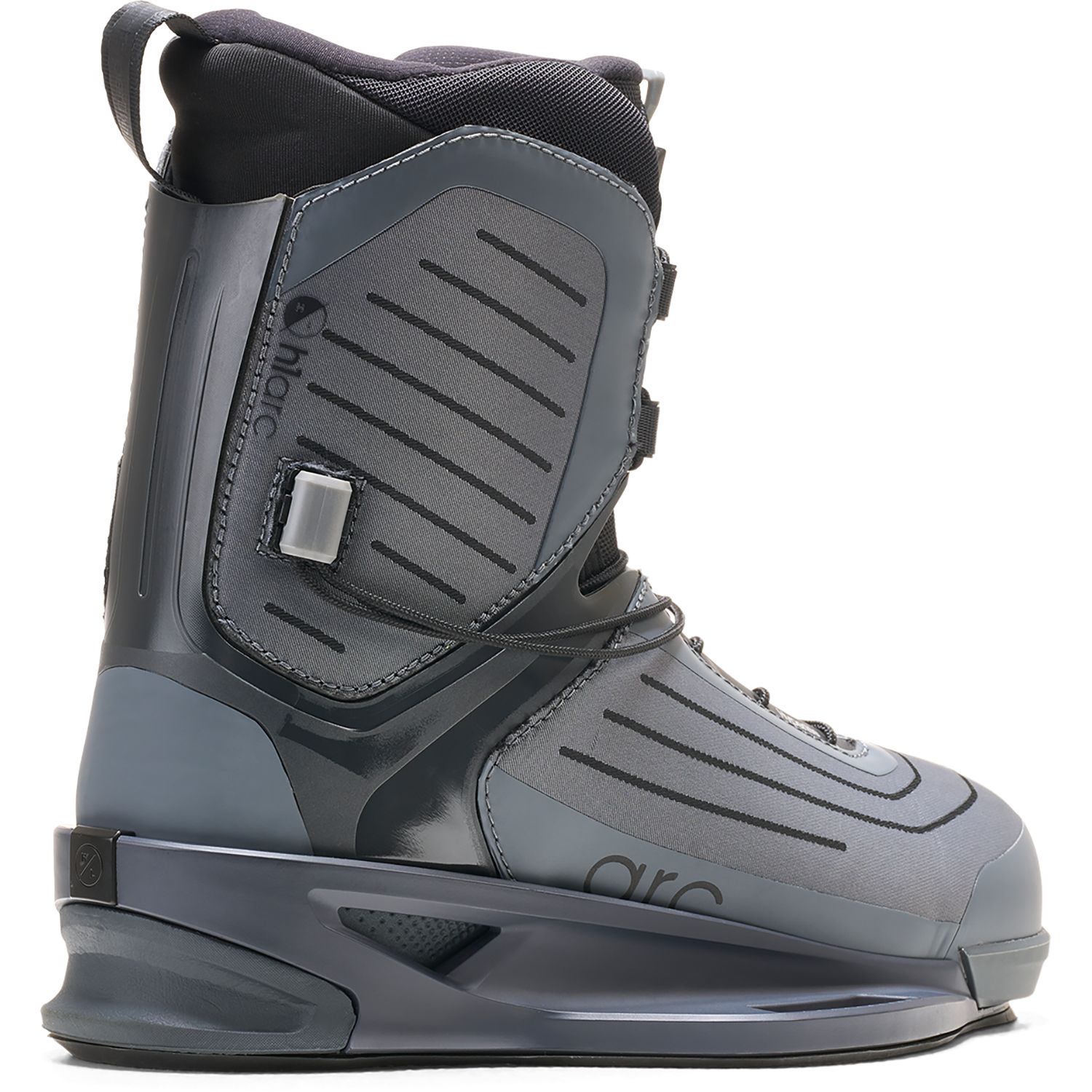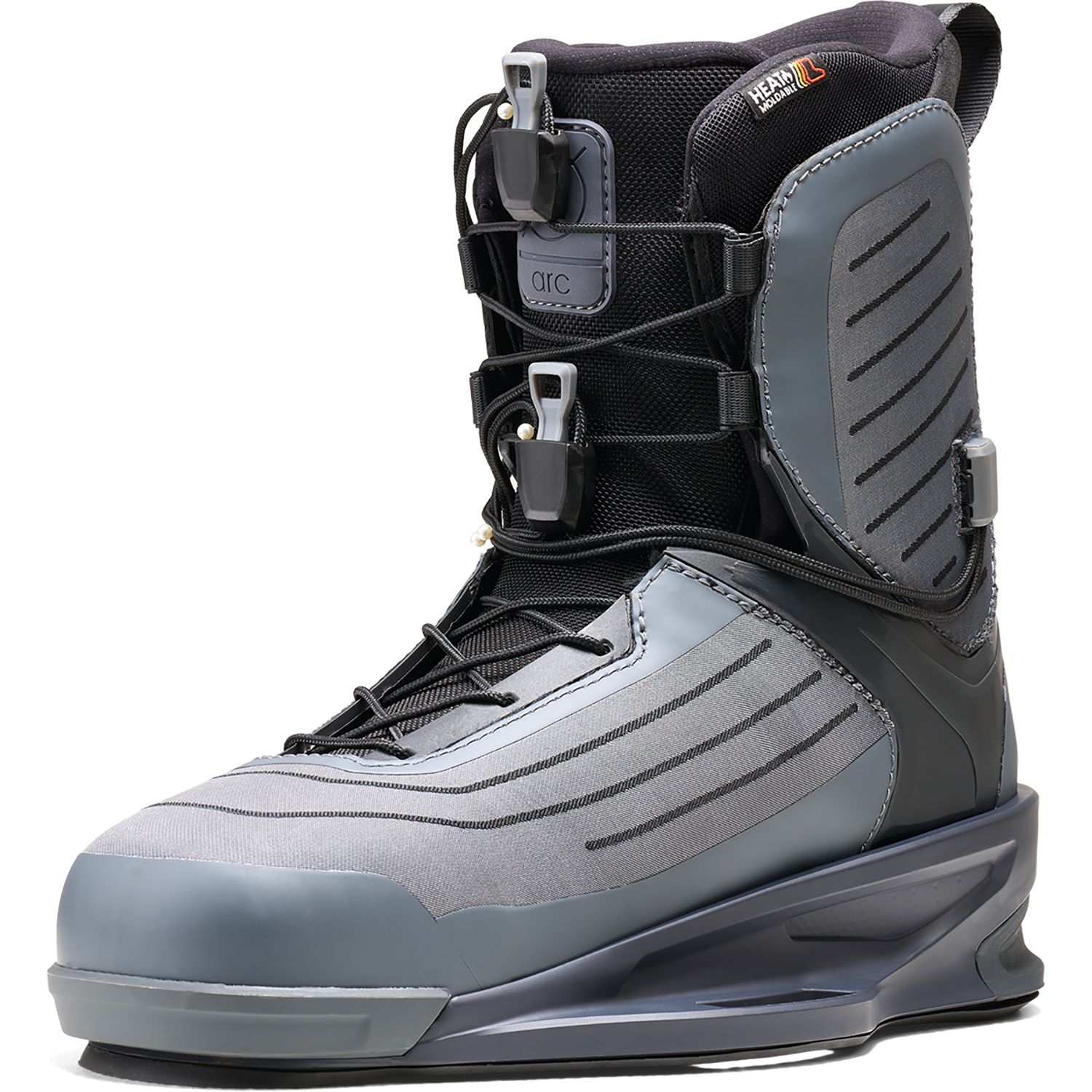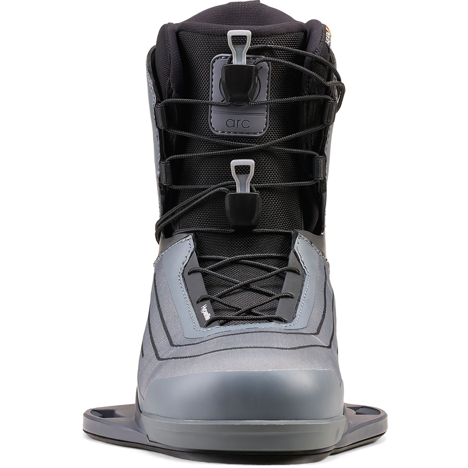 The Hyperlite ARC Boot combines exceptional performance and comfort on the 0-gTM Platform, using advanced materials like InvisilastTM and epx-Base. Its lightweight, tall cuff height delivers the ideal blend of stability and support. Thoughtfully designed internal components enhance mobility. All aspects of wakeboarding are covered. The ARC Binding excels in both boat and cable riding, catering to tournament and freeride enthusiasts alike.