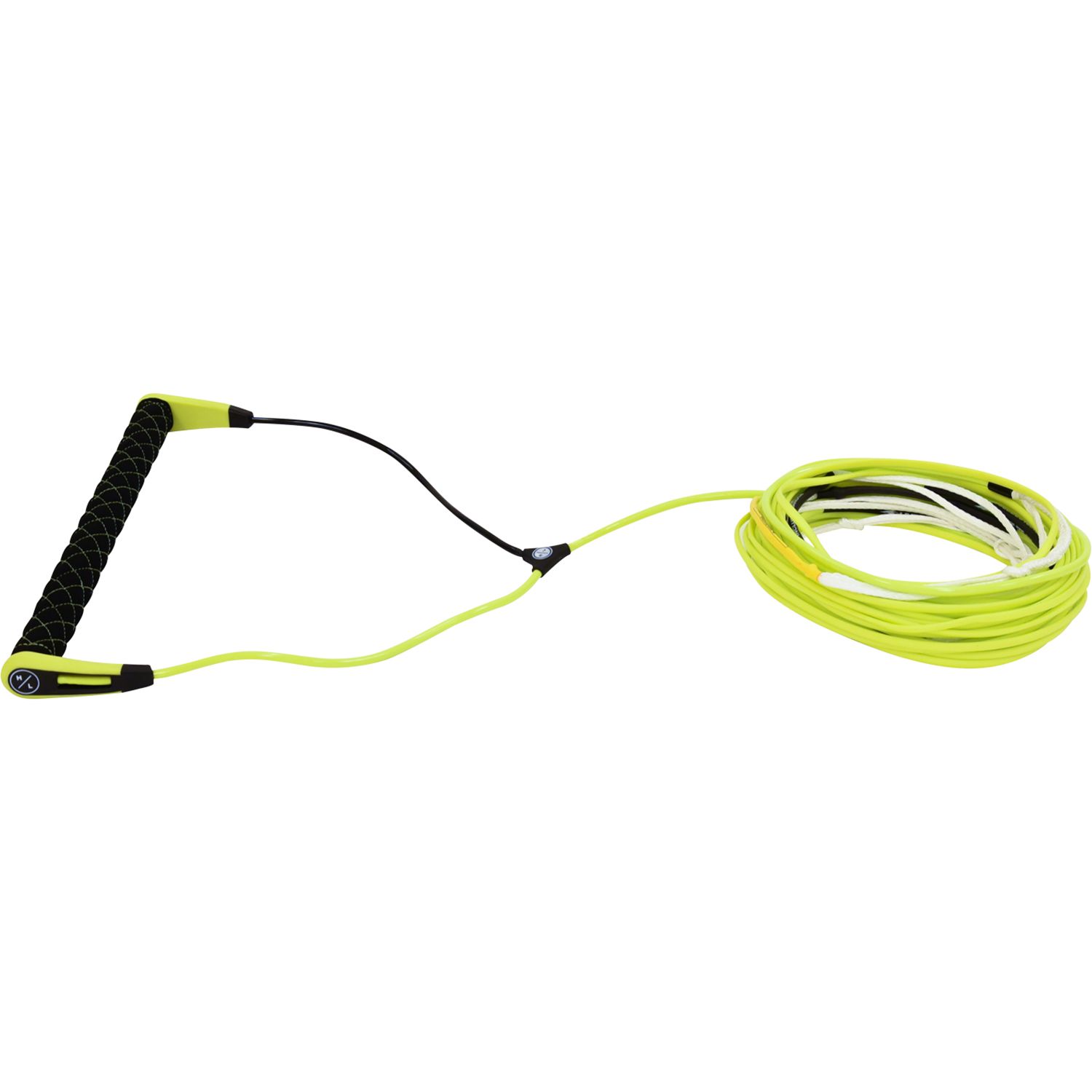 Wakeboard handles come in 15” widths for a wide, stable grip with various handle shapes, diameters and materials aimed to satisfy rider preferences. Premium handles become lighter and stronger and often have unique textures for added grip. Some handles include T-bars designed for advanced riders pre-wrapping spin tricks.