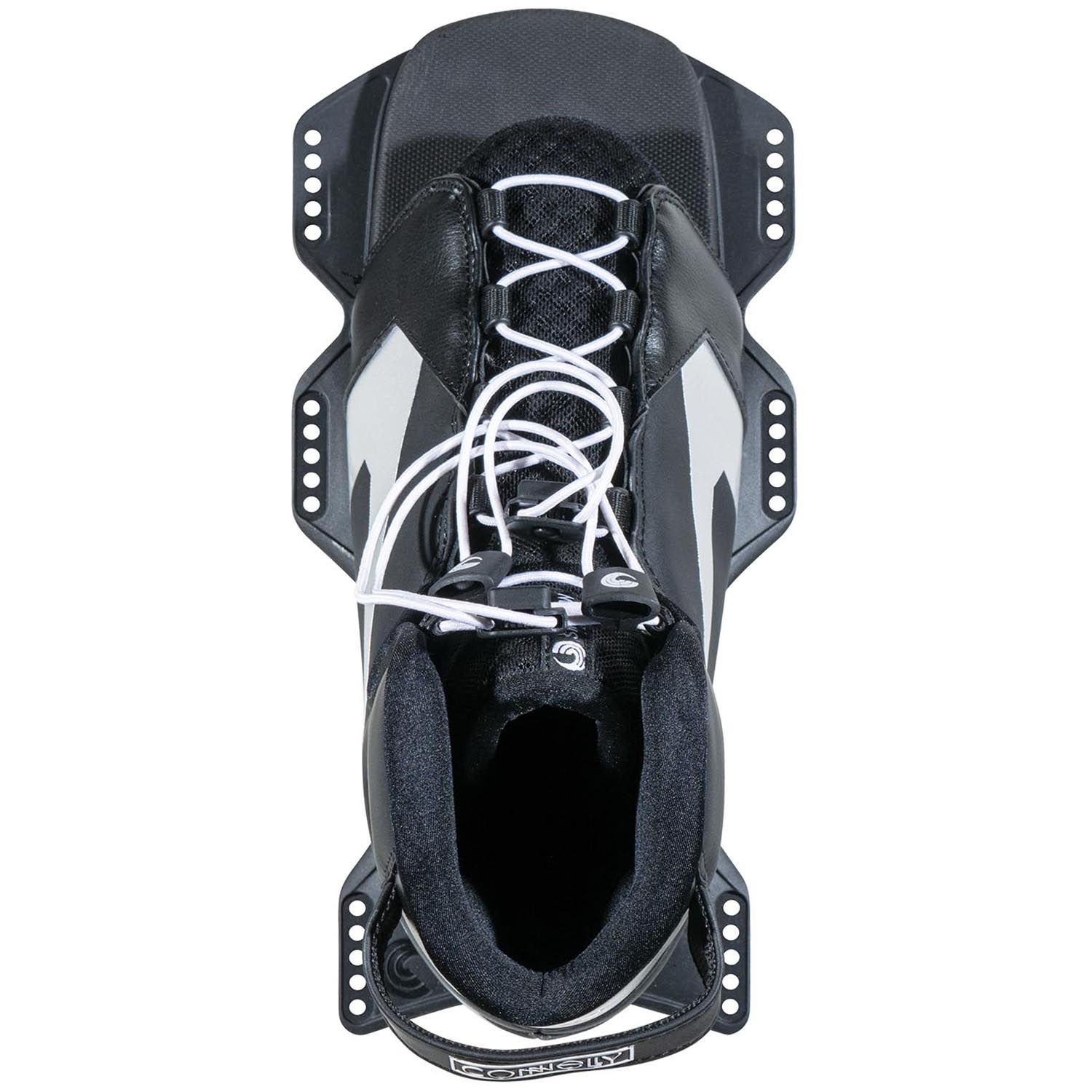 The Shadow boot is Connelly's most user-friendly design, featuring a stretch panel in the toe that adjusts for a wide range of sizes. The Lycra-lined toe and heel wraps mold snugly without pressure points, while the soft EVA footbed is mounted on a super-lite plate for maximum comfort behind the boat.