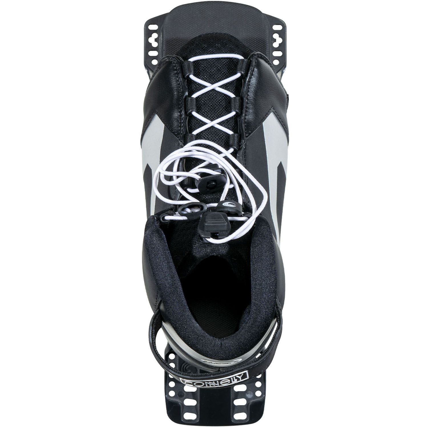 The Shadow boot is Connelly's most user-friendly design, featuring a stretch panel in the toe that adjusts for a wide range of sizes. The Lycra-lined toe and heel wraps mold snugly without pressure points, while the soft EVA footbed is mounted on a super-lite plate for maximum comfort behind the boat.