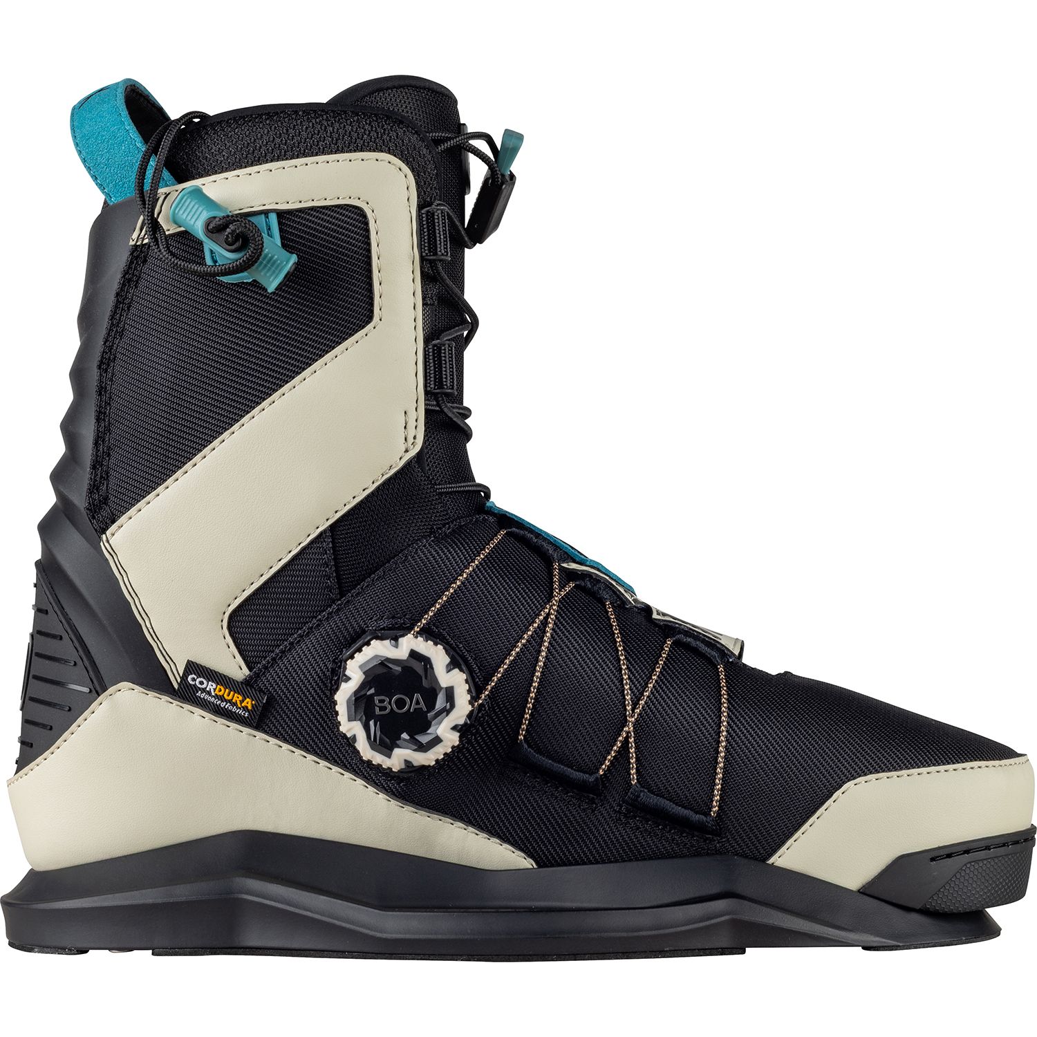 Starting with the industry first BOA® flap configuration, Ronix made it easier than ever to dial in the lower enclosure. This design was built from the ground up with two main objectives - 1. Unmatched board feel, 2. Eliminate lace friction so they are easy to slip in and out of. The double-lasting design comprised their proprietary Intuition+ heat moldable liner and Mainframe 2.0 High Cut skeleton gives the rider support where it is needed most. By using the popular Cordura Ballistic Twill Nylon fabric, sleek off-white materials, and blue suede textured accents, this boot is sure to turn some heads and withstand any environment.
