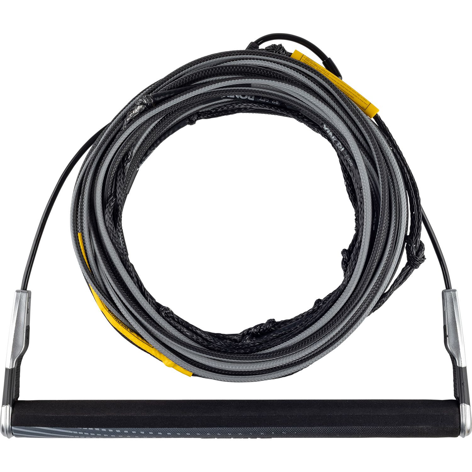 Wakeboard handles come in 15” widths for a wide, stable grip with various handle shapes, diameters and materials aimed to satisfy rider preferences. Premium handles become lighter and stronger and often have unique textures for added grip. Some handles include T-bars designed for advanced riders pre-wrapping spin tricks.