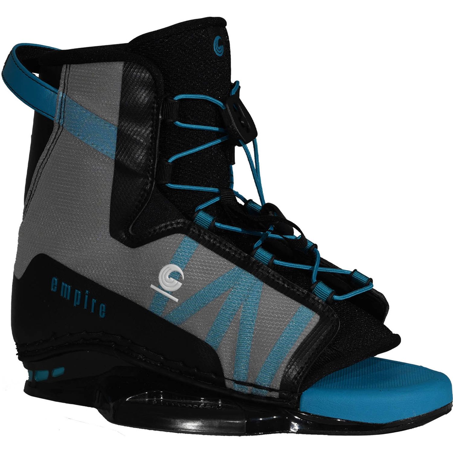 Connelly's new Empire Wakeboard Boot is an adjustable, open-toe boot designed for a wide range of foot sizes. It features a 3D molded tongue for comfort and support, an Infinity Plate chassis for strength and lightweight performance, and a cush liner with a deep heel pocket and Achilles pad for added protection. Easy to use, it delivers a secure, responsive fit for all riding levels.