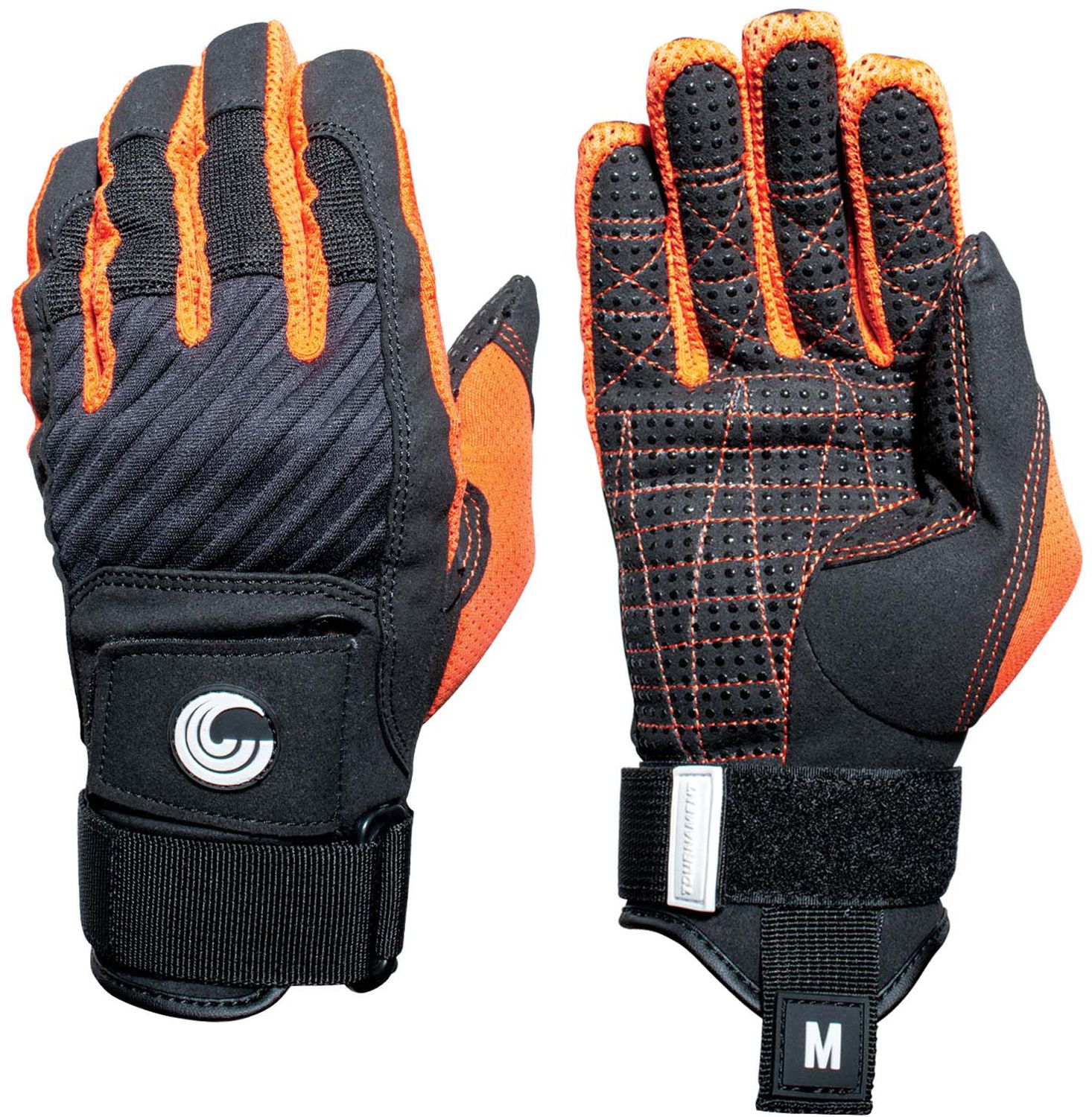 Connelly Tournament Waterski Gloves have an Amara palm with sticky bumps for increased grip on the handle. Plus, raised silicone palm and finger texturing offer extra gripping power. Embossed breathable neoprene for knuckle protection. The pre-curved fingers will form perfectly to your hands, and the Velcro back hand closure lets skiers adjust the gloves to their most comfortable fit for skiing.