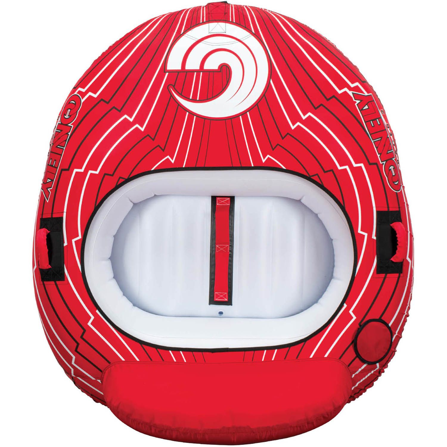 - LOUNGE: Lounge tubes are the best option for riders that want to sit back and relax. They are available to suit 2-4 riders and are characterised by a flat bottom with built in back rest. Riders sit feet first on the flat section with their backs up against the inflatable upright sections. Lounge style tubes are the best option for young kids that aren’t confident around the water. They are the biggest and heaviest style of tube available, so are only recommended to be towed being a suitable sized boat.