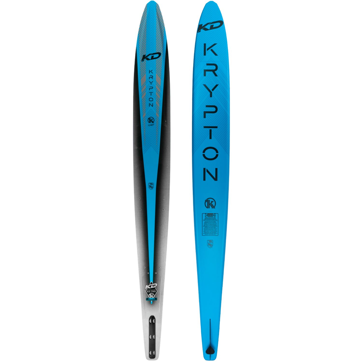 Krypton is one of the rarest elements on the period table and the all-new KD Krypton is no exception. Utilising the high weave fiberglass matting, lightweight resin and a denser polyurethane foam core, the Krypton is the ultimate weapon for the 30-34mph open water skier chasing a ski that coasts wide of the boat without bogging down. Extra volume is gained from the widening of the forebody through to the tail allow the skiers to ski at slower speeds and improve at a rapid pace, while the reengineered tip riser step gives the Krypton a forgiving ride with a pronounced sweet spot that they can feel balanced on.