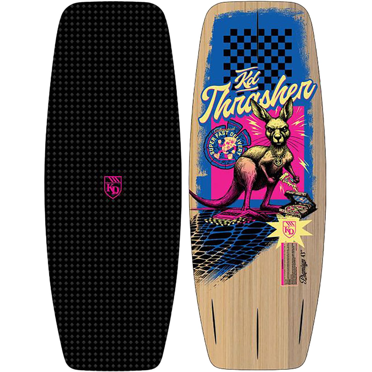 The Thrasher is rewriting everything you thought you knew about wakeskates with its triple fin thruster layout blurring the line between surfing & skateboarding. The thinned out 9x layer maple construction and EVA traction pad make the Thrasher highly manoeuvrable yet stable underfoot. Not everyone aims for kickflips & pop shuvits, some people like to loosen their trucks off and flow when they get on their skates and the Thrasher’s bevelled rail & .8” tall hook fins allow gliding soul turns without a worry in the world.