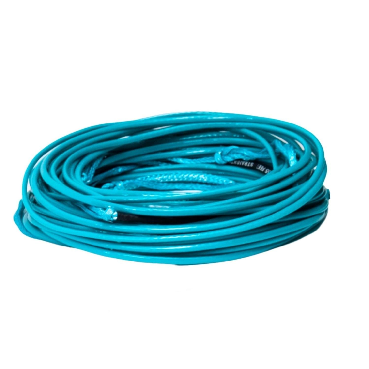Wakeboard ropes are available in Poly E, Dyneema or Spectra constructions. Poly E is a low-stretch fibre that is forgiving, inexpensive and commonly used for water ski and tube ropes. Poly E ropes are suitable for beginners however may become problematic for intermediate and advanced riders due to its inherent stretch. Poly E ropes are typically available in maximum lengths of 65’ with a limited number of sections. In contrast, Dyneema and Spectra are no-stretch fibres that offer incredibly high breaking strengths and are covered with a silicone or plastic jacket for durability, waterproofing, floatation, and colour. They offer a significant performance increase over poly E ropes due to their lightweight, no-stretch characteristics. Dyneema and Spectra ropes are available in maximum lengths of 80’ with between 4 and 8 sections.