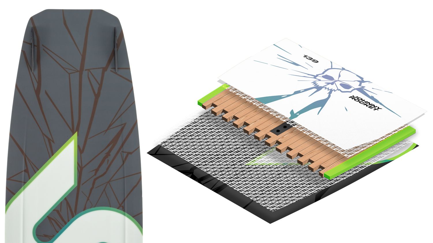 We built the Johnny Rocket wakeboard to take pro team rider John Dreiling to the moon. John has gapped farther, ridden faster, and gotten wilder than anyone on the team, landing himself a ROTY award in the process. His board, the Johnny Rocket, comes with the most impressive balance of durability, flexibility, traction, and freedom. You can press it hard, send it far, and take it to the boat to get creative on any size wake as well with the addition of our standard wake fins. This board is all-terrain at its finest and has been put through one of the harshest testing processes of any board in the line.