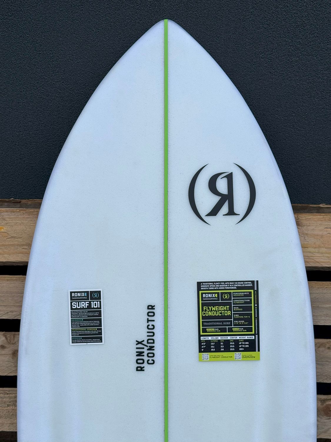 2023 Ronix Flyweight Conductor 4'7". This board is an ex-demo, only used a handful of times, so it looks almost brand new. Some slight yellowing of the base, but still in fantastic condition. This board includes Fins.