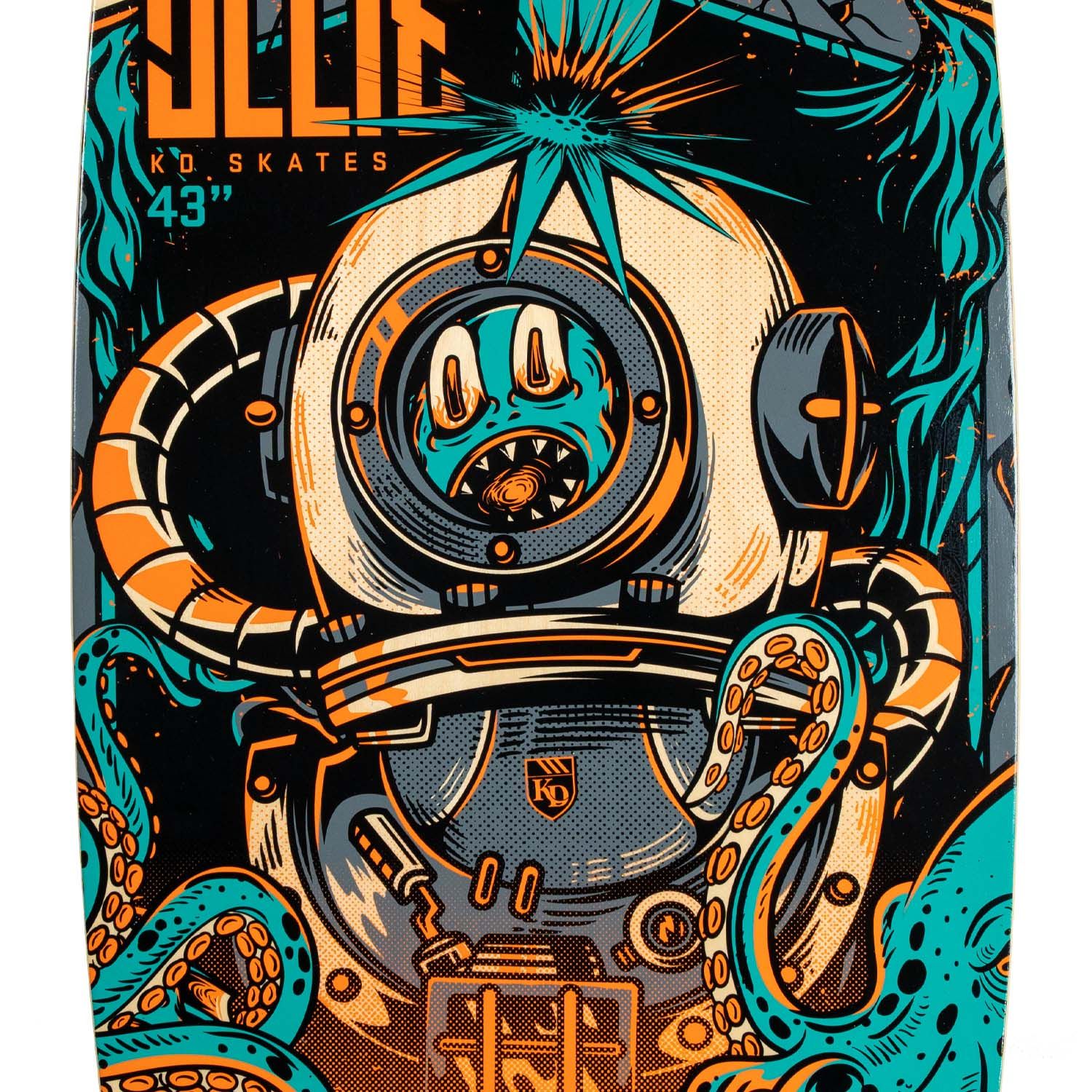 The KD Ollie is the perfect skate to have in any boat, shaped to provide easy riding and even easier Ollie power. Featuring a continuous rocker and wood design, the KD Ollie is strong, providing a consistent pop every attempt. With a concave EVA traction Pad and a traditional fin setup, you will have a comfortable ride that edges like a high-end skate but is suitable for beginners as well.