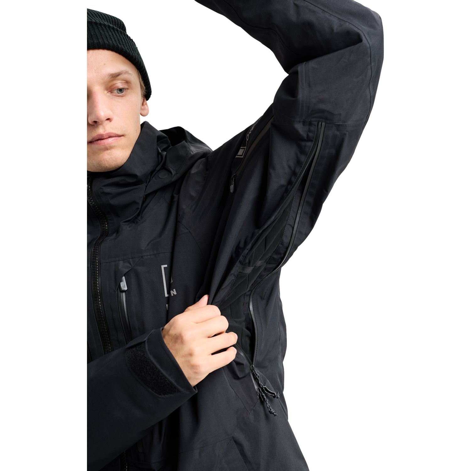 2-Layer GORE-TEX, low-profile Prmaloft® insulation, pit zips, and a regular fit with an articulated cut.