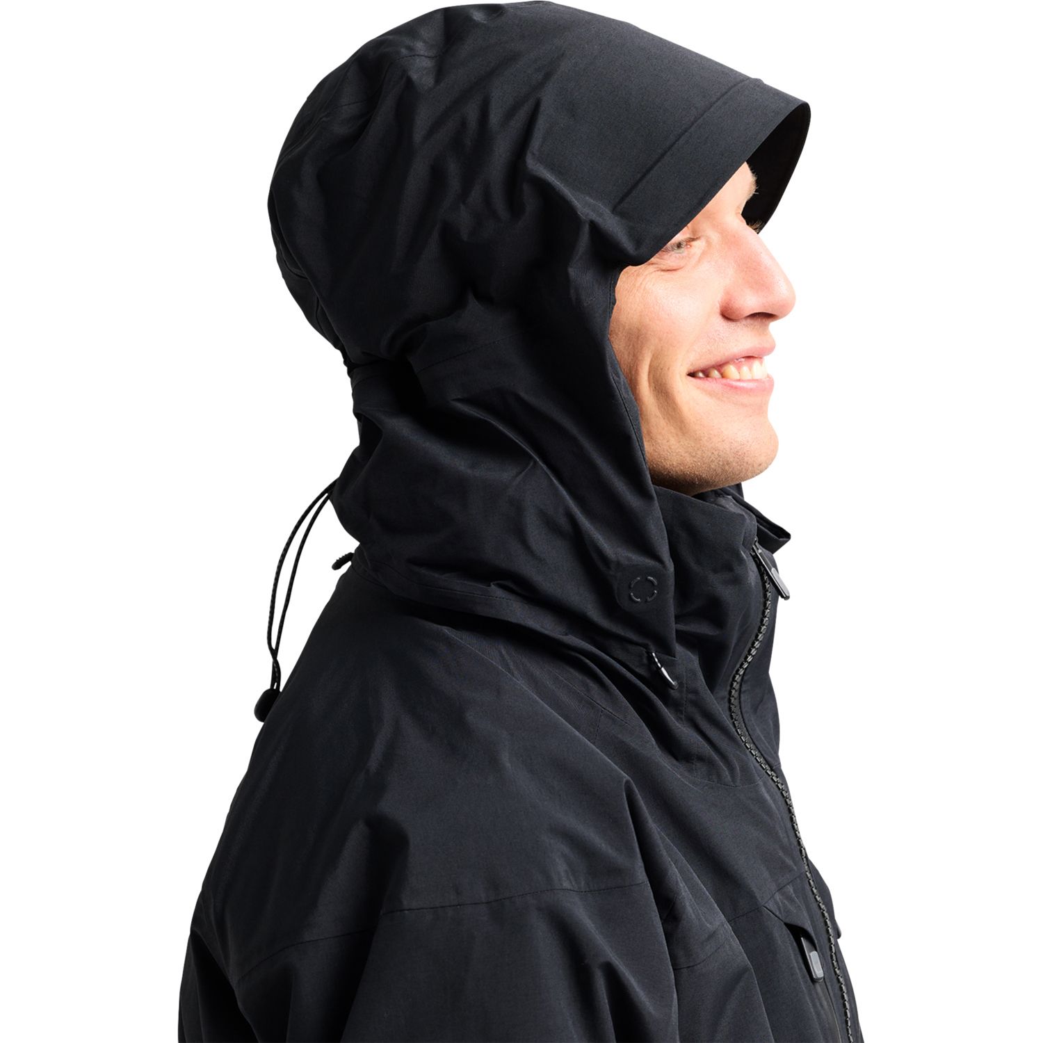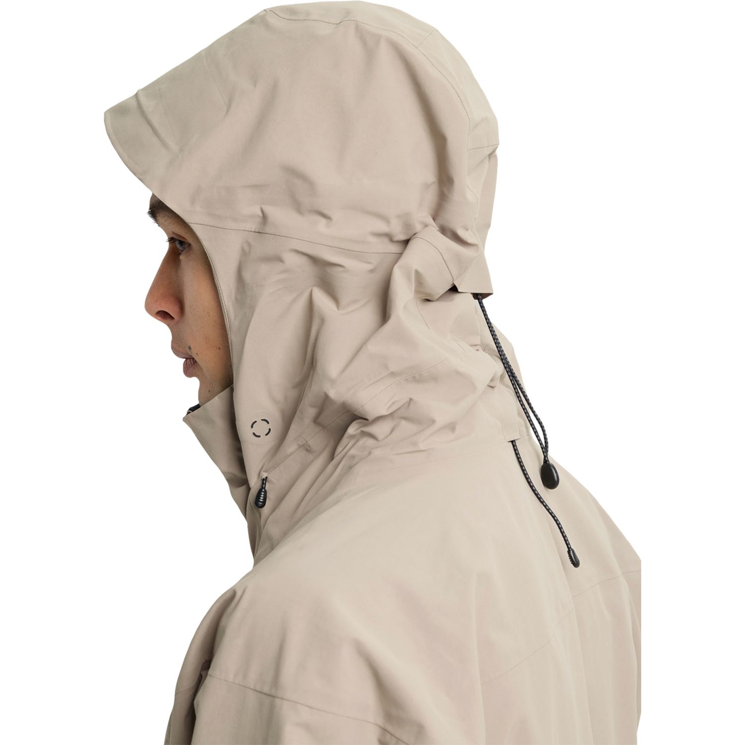 • StormForm attached hood with drop construction and Cohaesive embedded cinch and hood-length-adjustment YKK water-resistant zippers; Mesh-lined, no-snag Pit Zip vents; No-lift underarm gusset