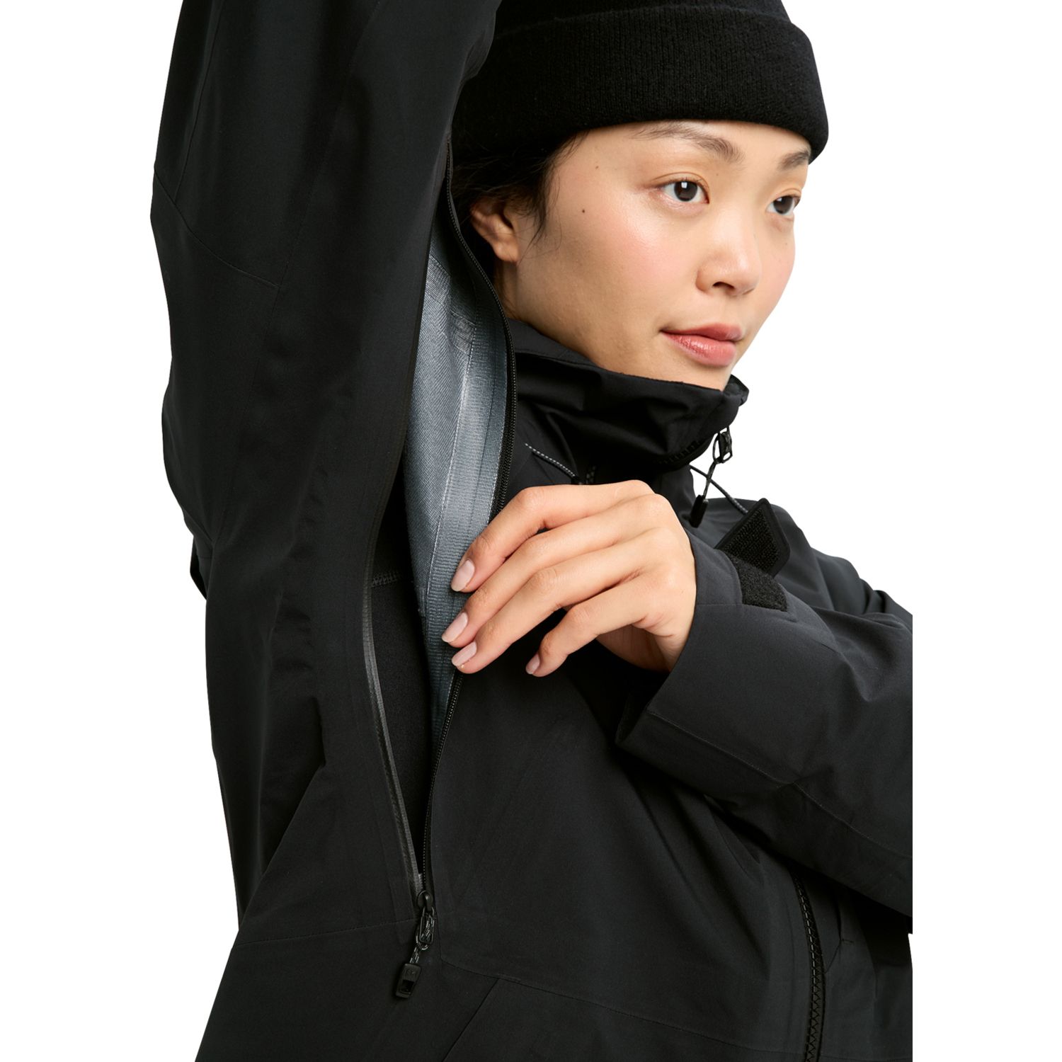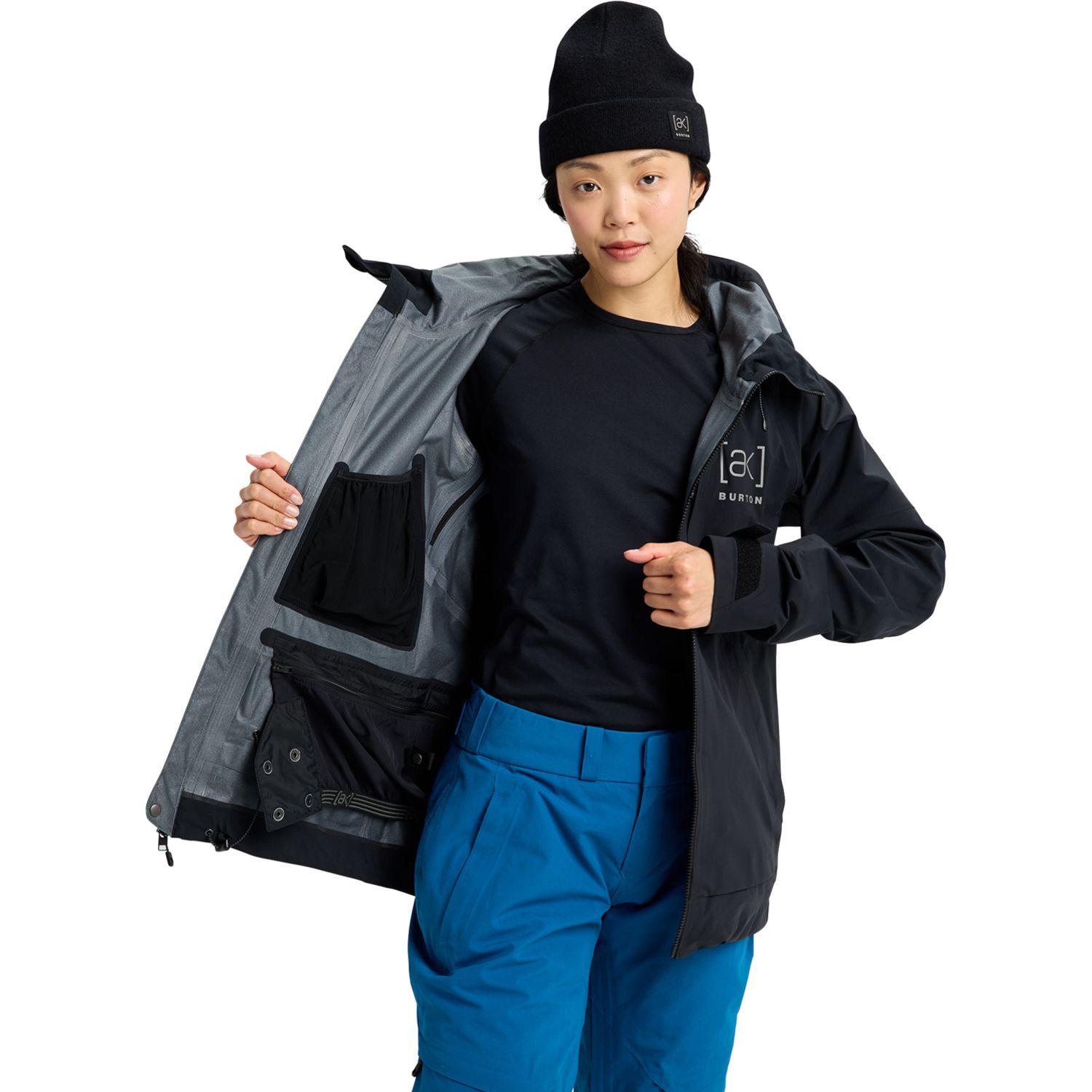 When it's waist deep and dumping, there's no substitute for the women's Burton [ak] Kimmy GORE-TEX 3L Stretch Jacket. It feels light and mobile, but it's packed with backcountry-