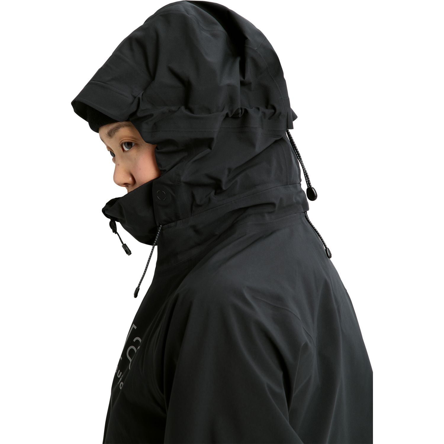 • Ergonomic water-repellent zip-out stretch waist gaiter with jacket-to-pant interface; Two-way center front zipper; StormForm attached hood with drop construction and Cohaesive embedded cinch and hood length adjustment