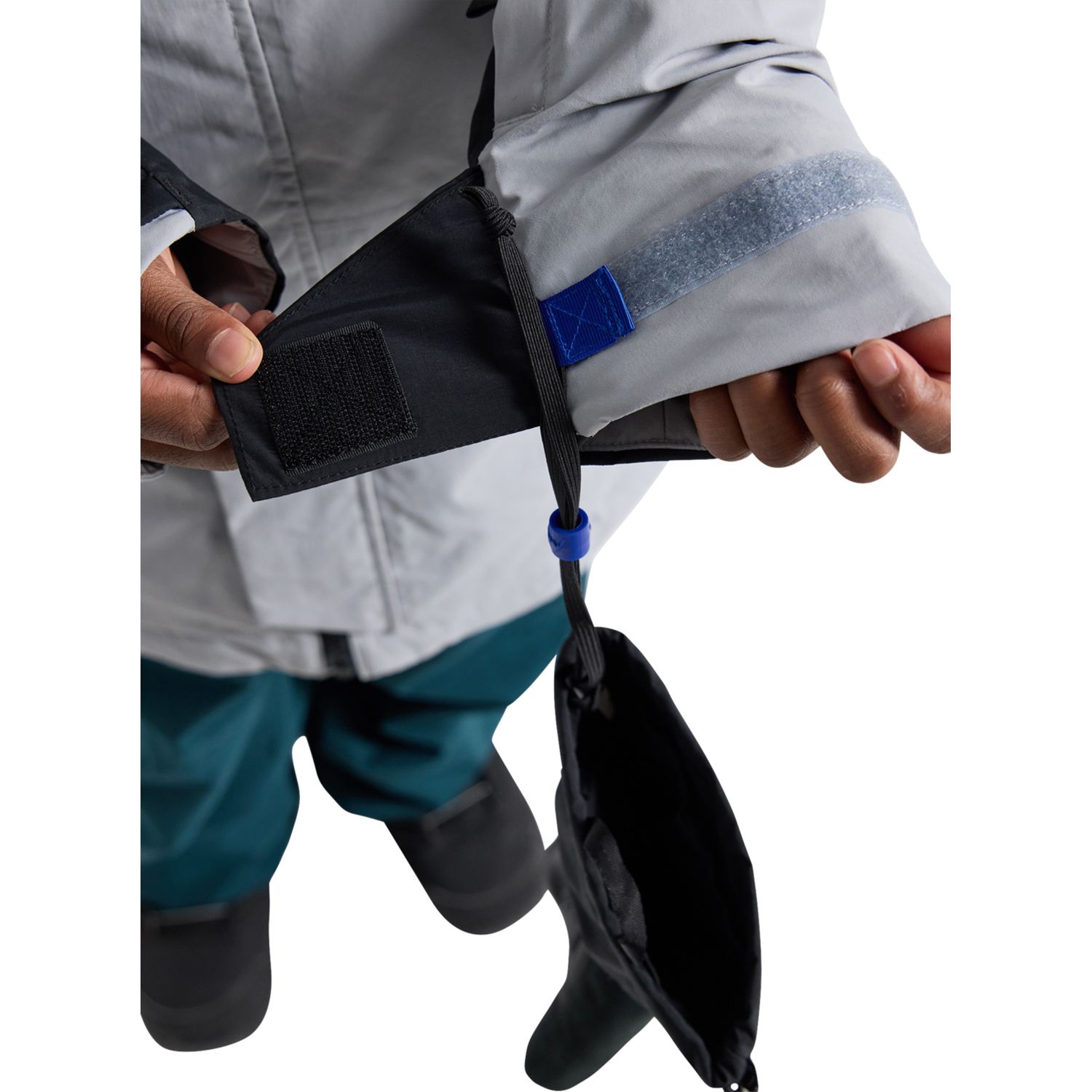 • Ergonomic, water-repellent waist gaiter with jacket-to-pant interface; Adjustable cuffs; Pocket-accessible bungee hem cinch; Hook-and-loop glove attachment