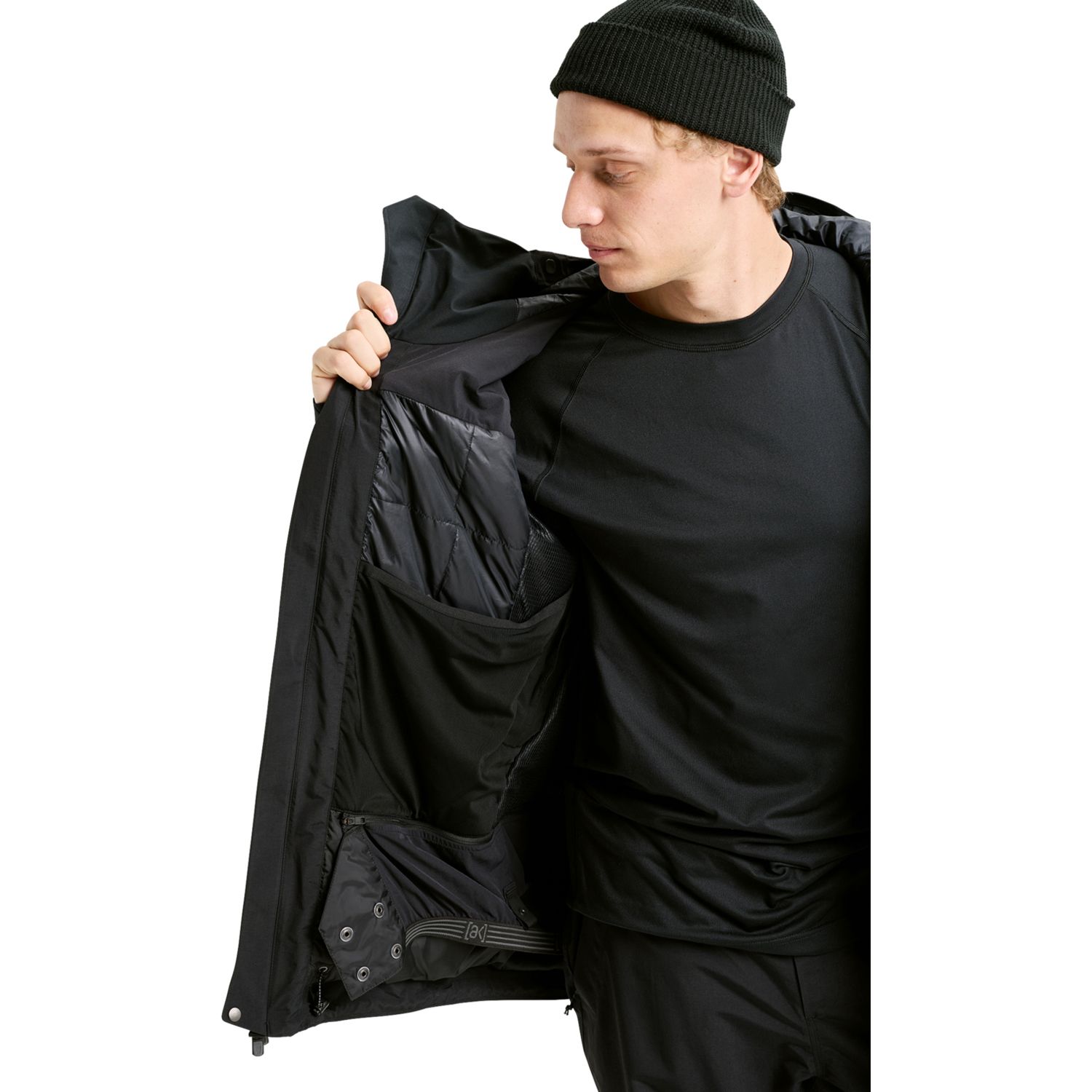 • Zippered hand-warmer pockets, chest pockets, and bicep pass pocket, interior power mesh dump pockets, and zippered interior media/goggles pocket with therma-pocket for keeping your device warm