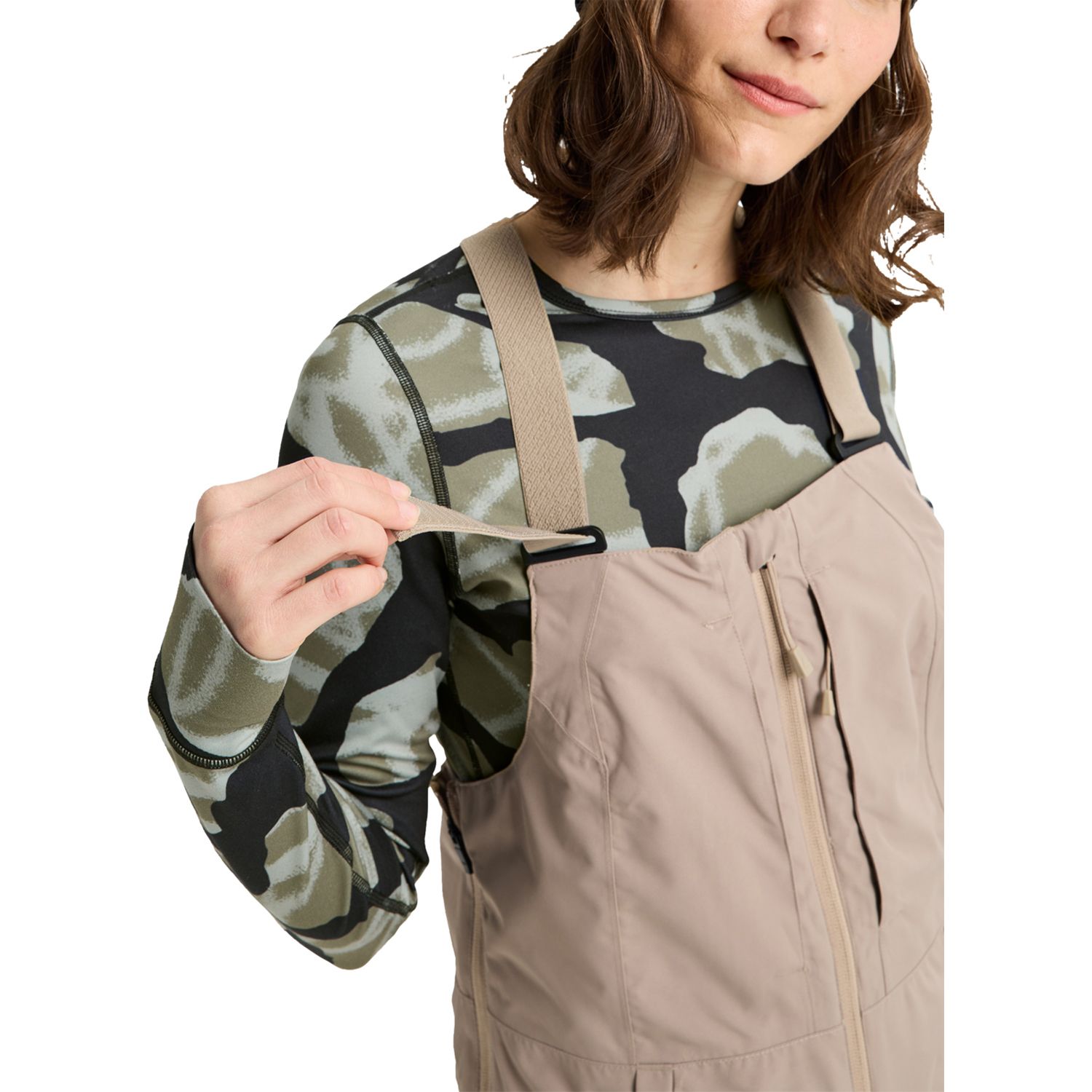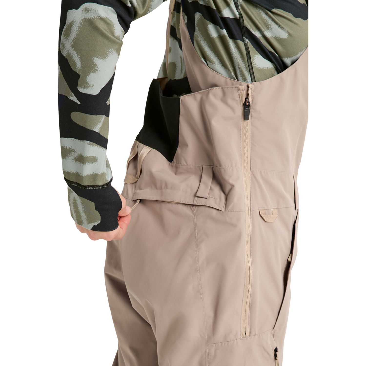 • Adjustable elastic suspender straps; Interior storm flap; Jacket-to-pant interface loops