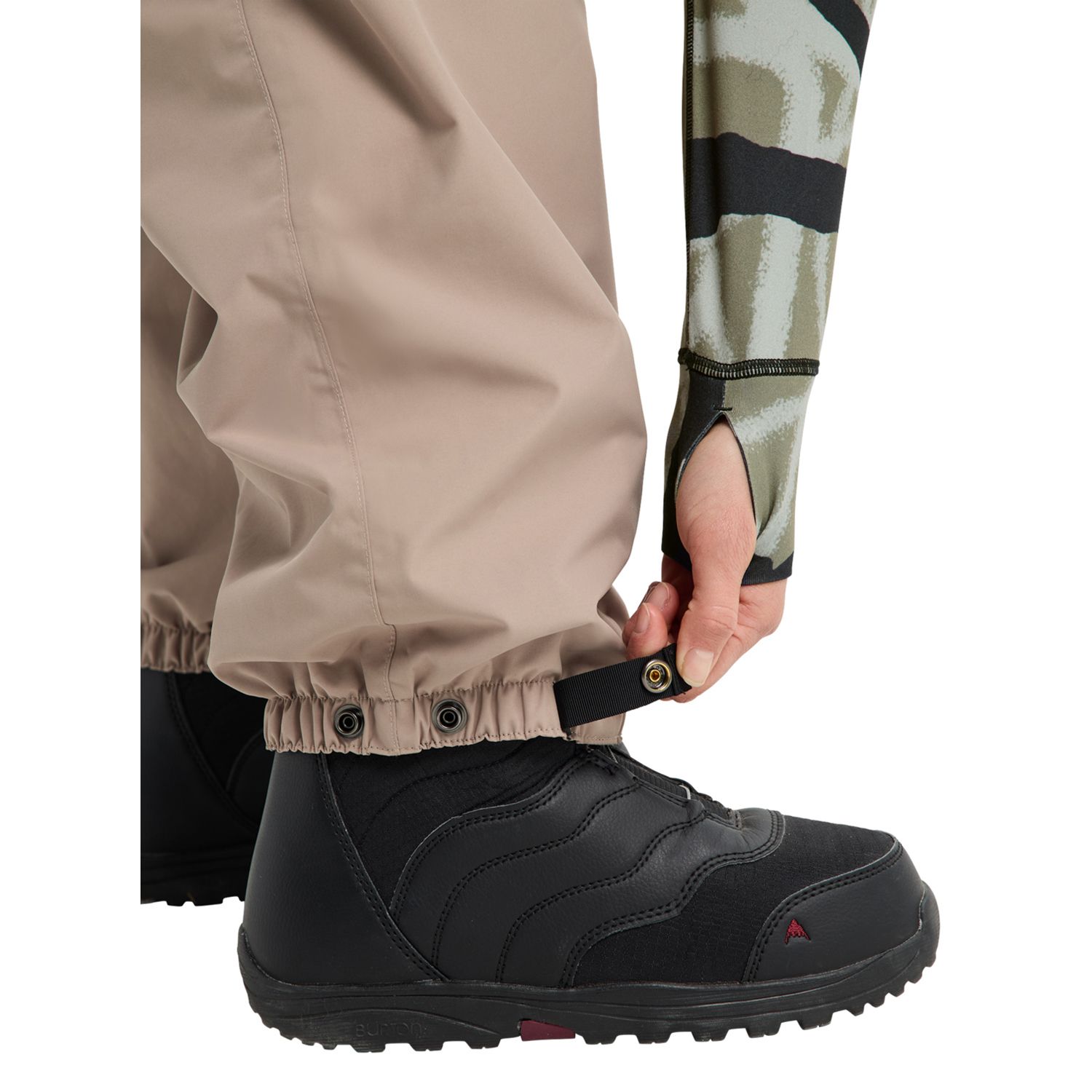 • Stretch back panel; Zippered drop-seat construction; Snap-adjustable elasticized cuff