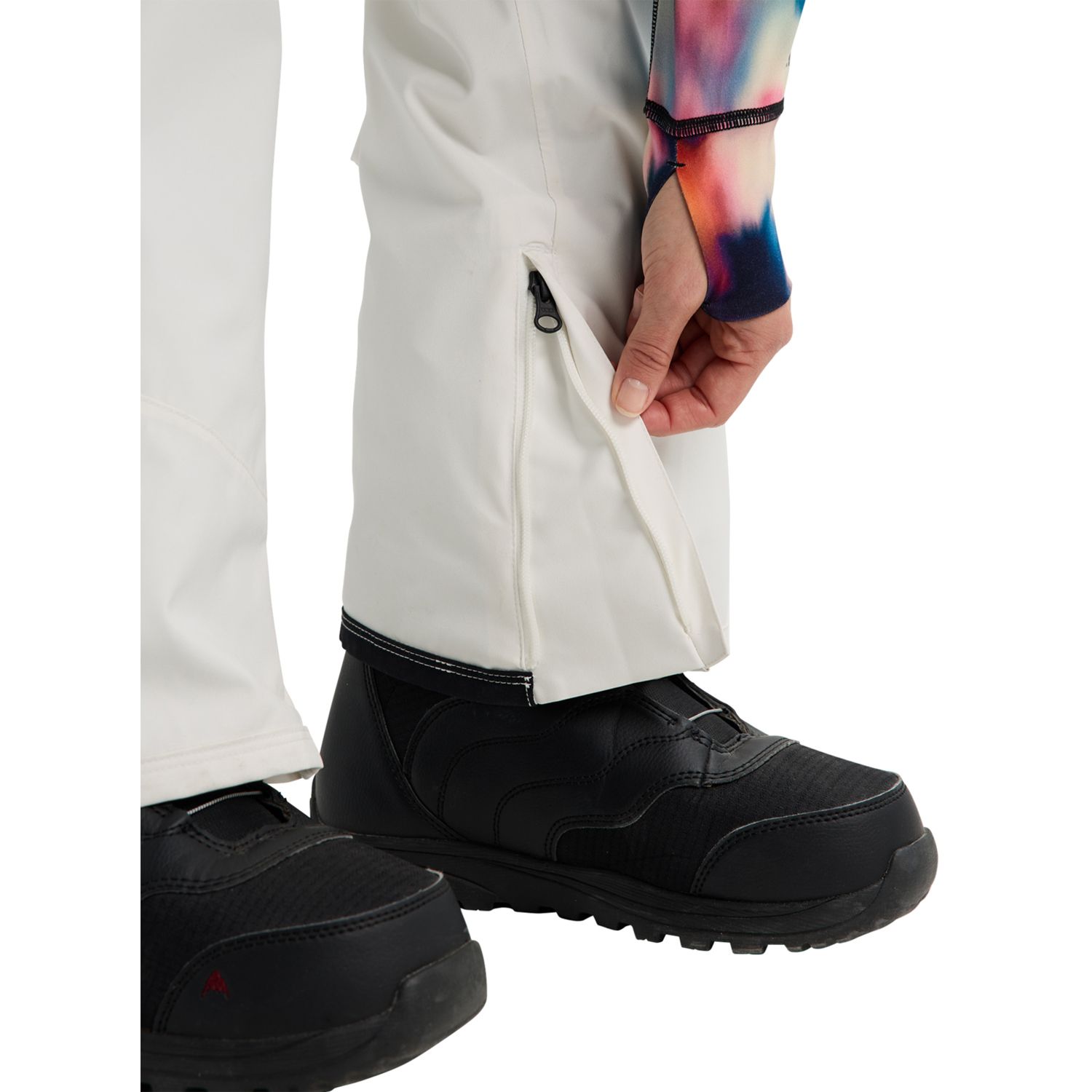 • Water-resistant boot gaiter; Anti-scuff cuff; Zippered cuff gussets; Leg lift; Mesh-lined, no-snag thigh vents; Key clip in pocket