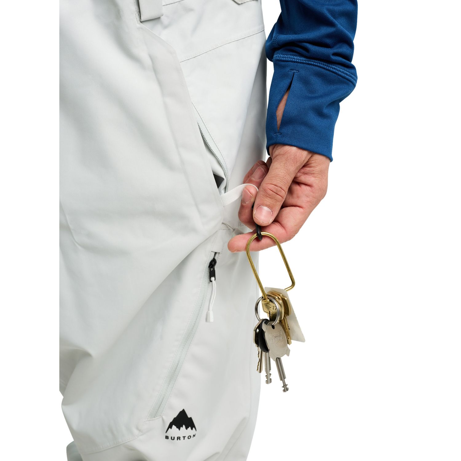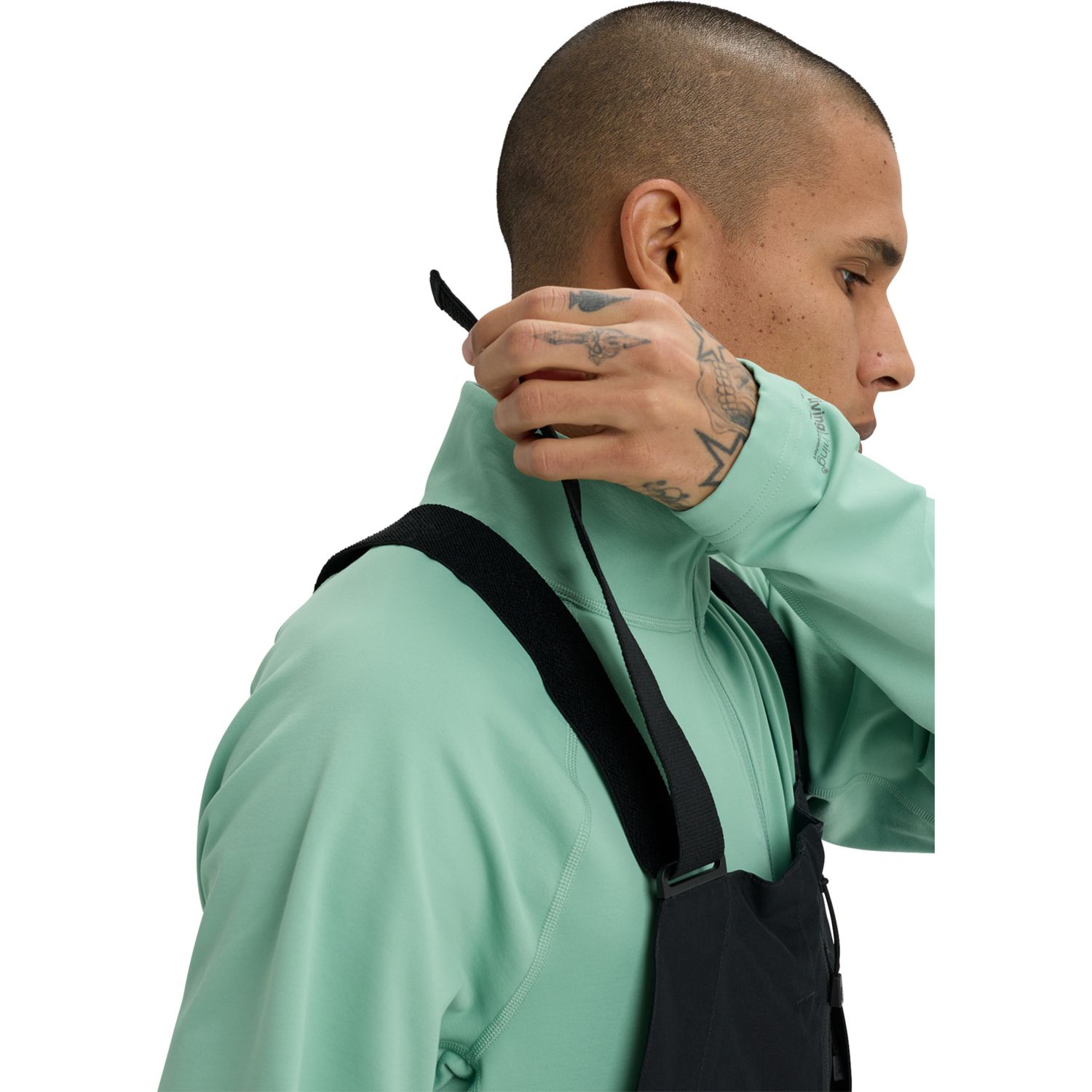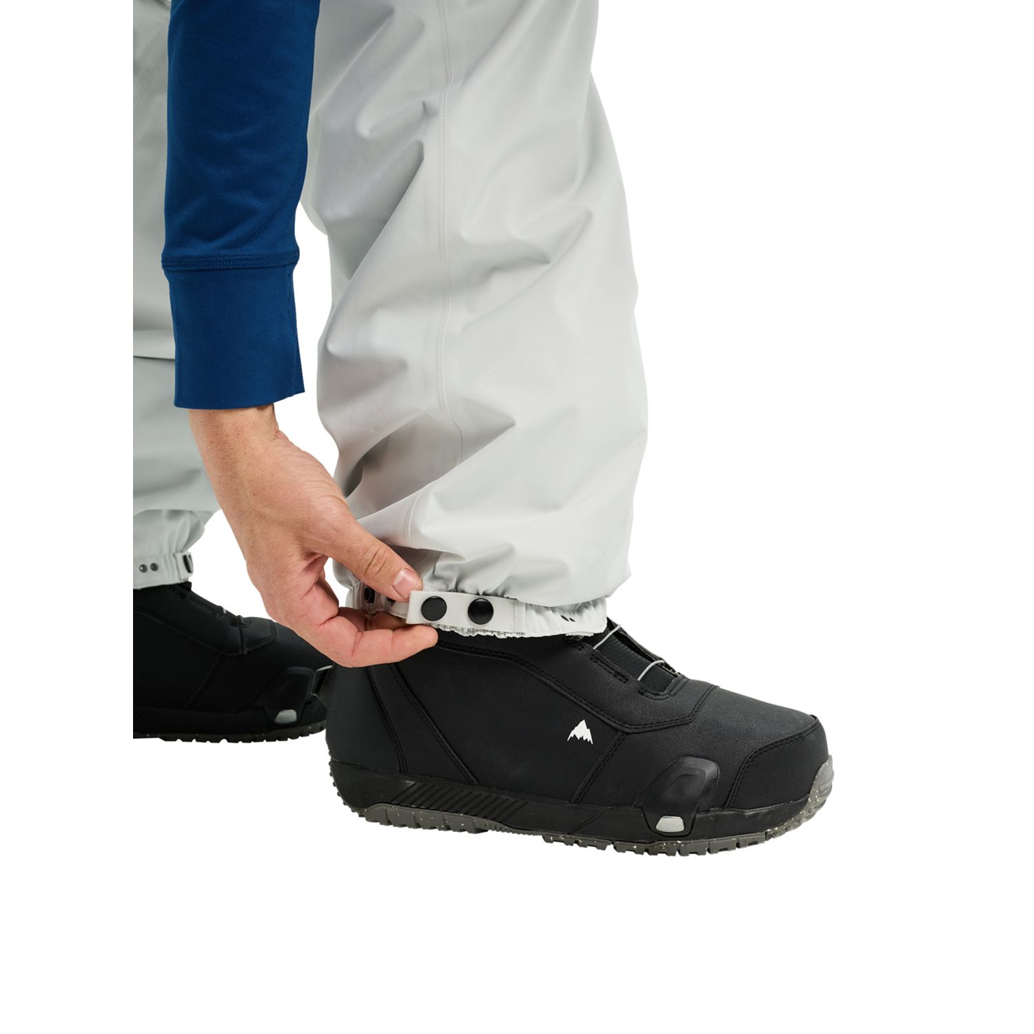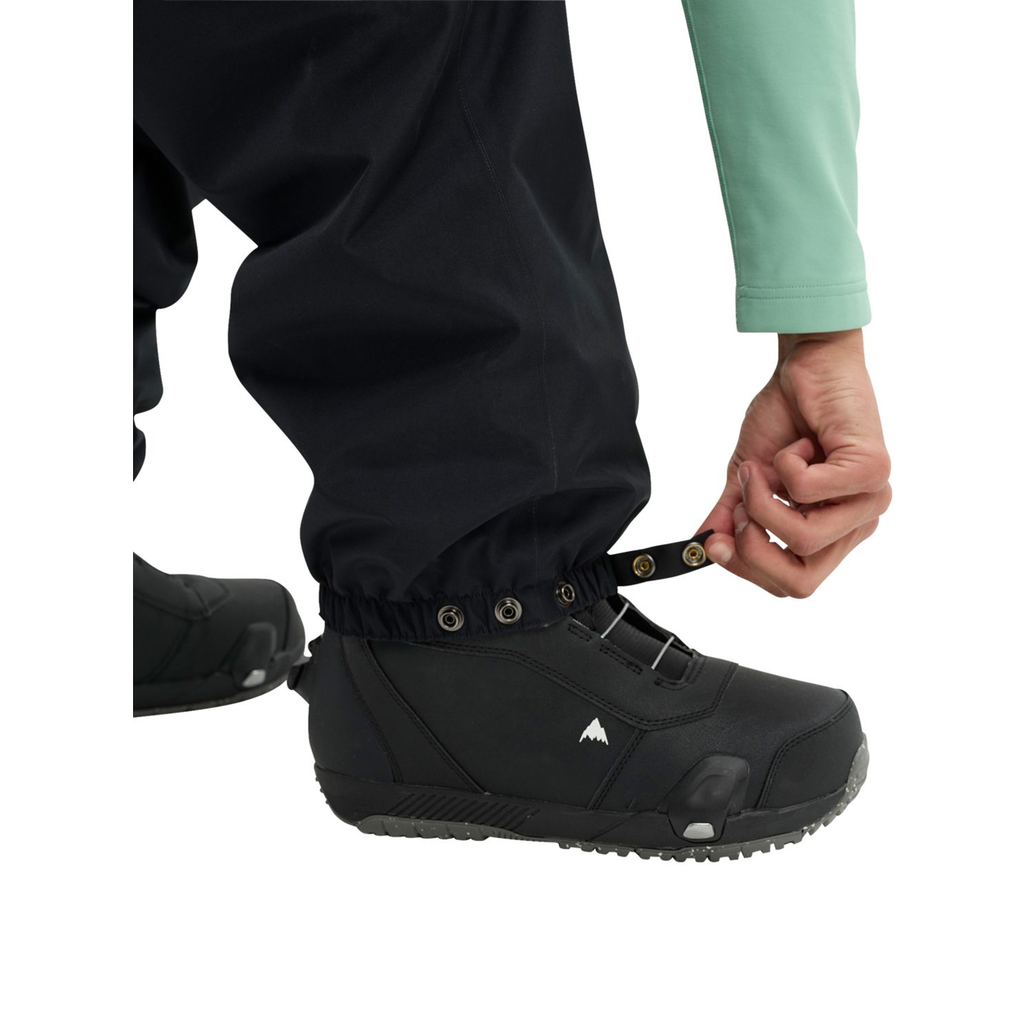 • Jacket-to-pant interface loops; Stretch side panels; Snap-adjustable elasticized cuff