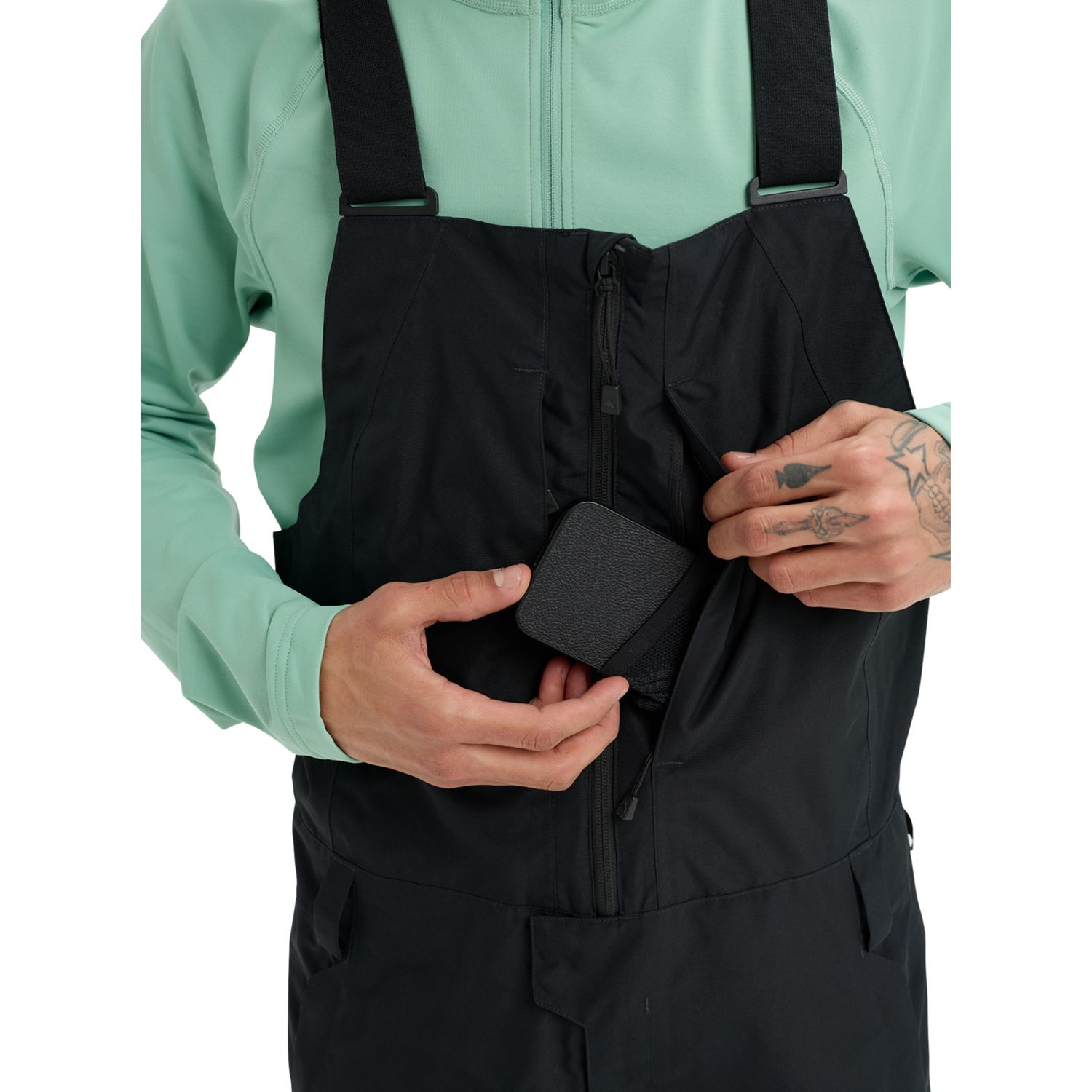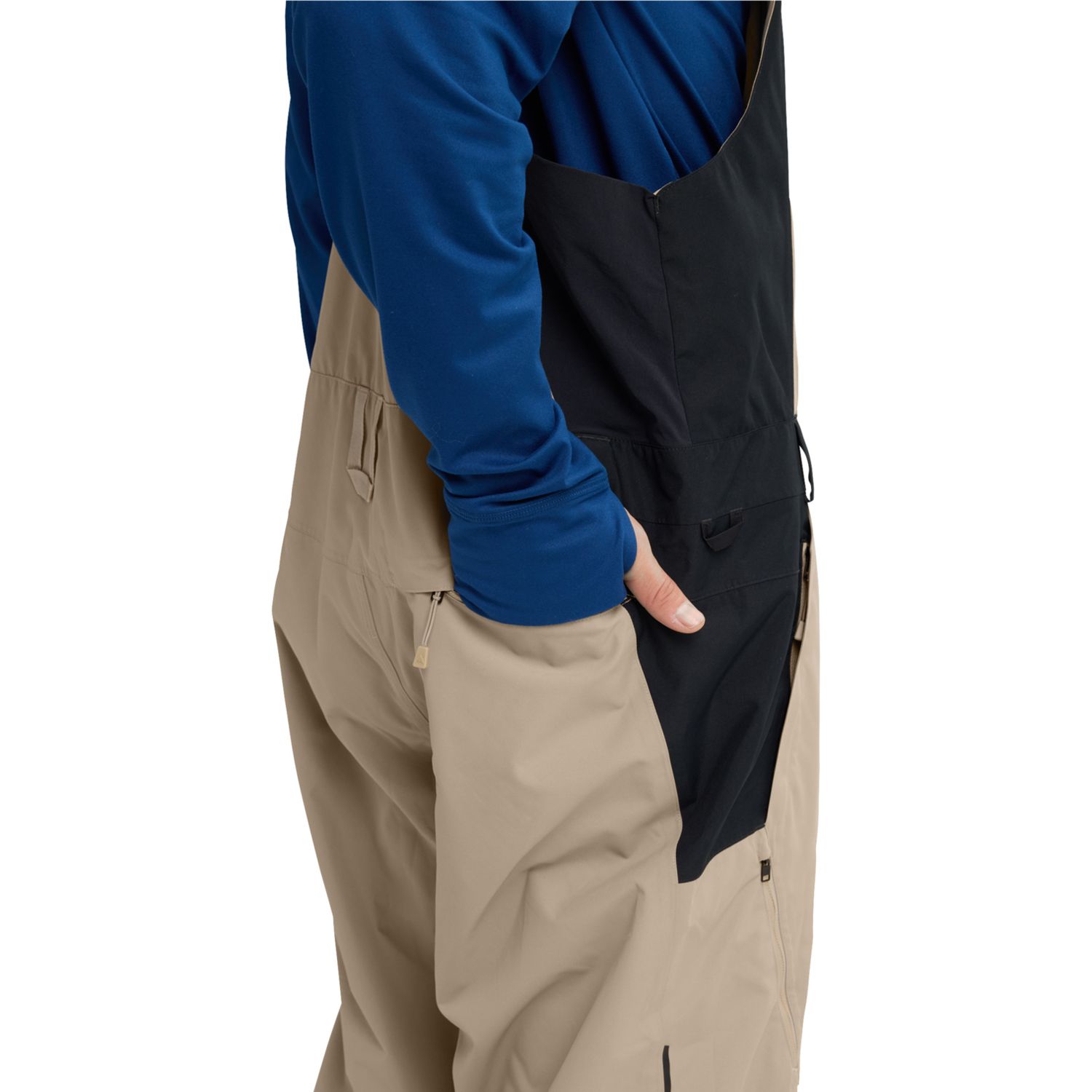 - GORE-TEX: Gore-Tex is a high-performance fabric technology that is commonly used in snow bib pants and other outdoor gear. It is a waterproof and breathable fabric that is designed to provide protection from the elements while still allowing moisture vapor to escape. The Gore-Tex membrane is made up of microscopic pores that are much smaller than water droplets, but larger than water vapor molecules. This means that water is not able to penetrate the membrane from the outside, but sweat and other moisture vapor can escape from the inside, keeping the wearer dry and comfortable. Gore-Tex is designed to be lightweight and packable, making it a popular choice for backcountry skiers and snowboarders. In addition to its waterproof and breathable properties, Gore-Tex is also windproof, which helps to provide extra protection from the elements.