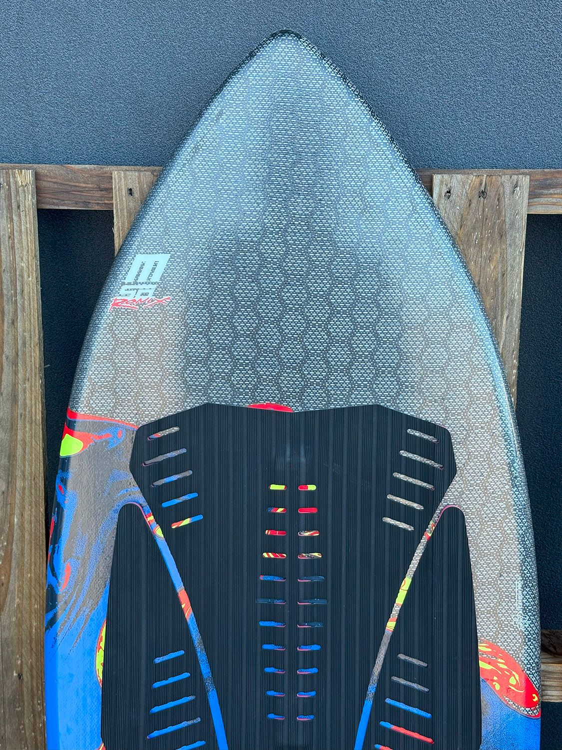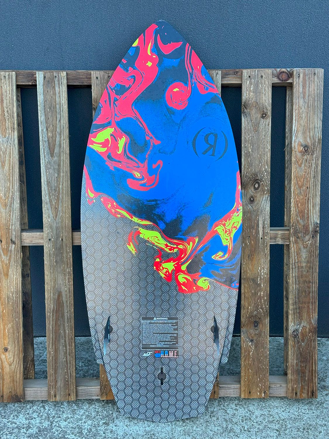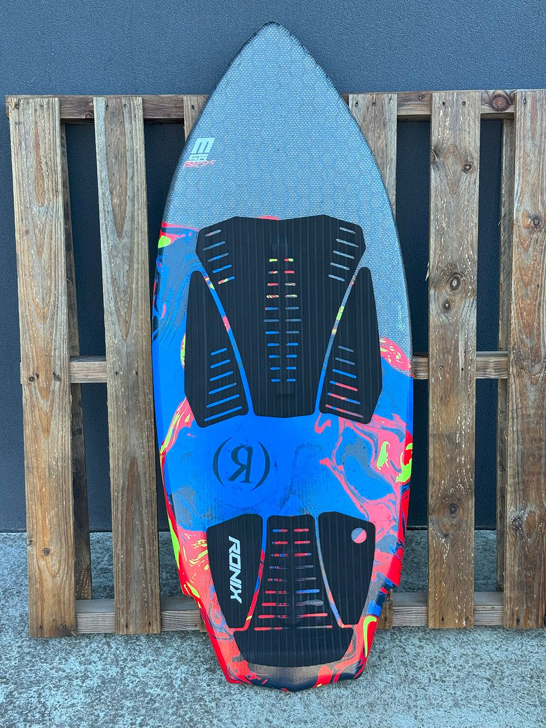 2025 Ronix M50 Carbon Pro H.O.M.E 4'7" (Ex-Demo). Skimmer is in good condition for a demo. A few scuffs on the base and a dent near the nose. Otherwise it's good. Comes with a 3.5" Left and 3.5" Right fin.