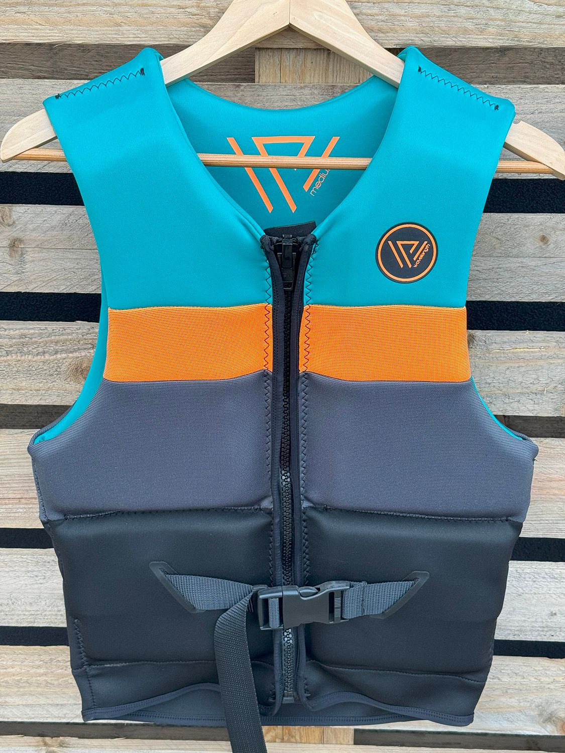 Wavelength Sample Vest Medium. NOT APPROVED. New and never used. There is NO Australian Standards PFD/L50S Approved stamp inside the vest, meaning this Vest is NOT APPROVED as a personal flotation device.