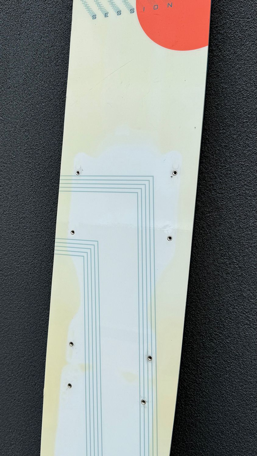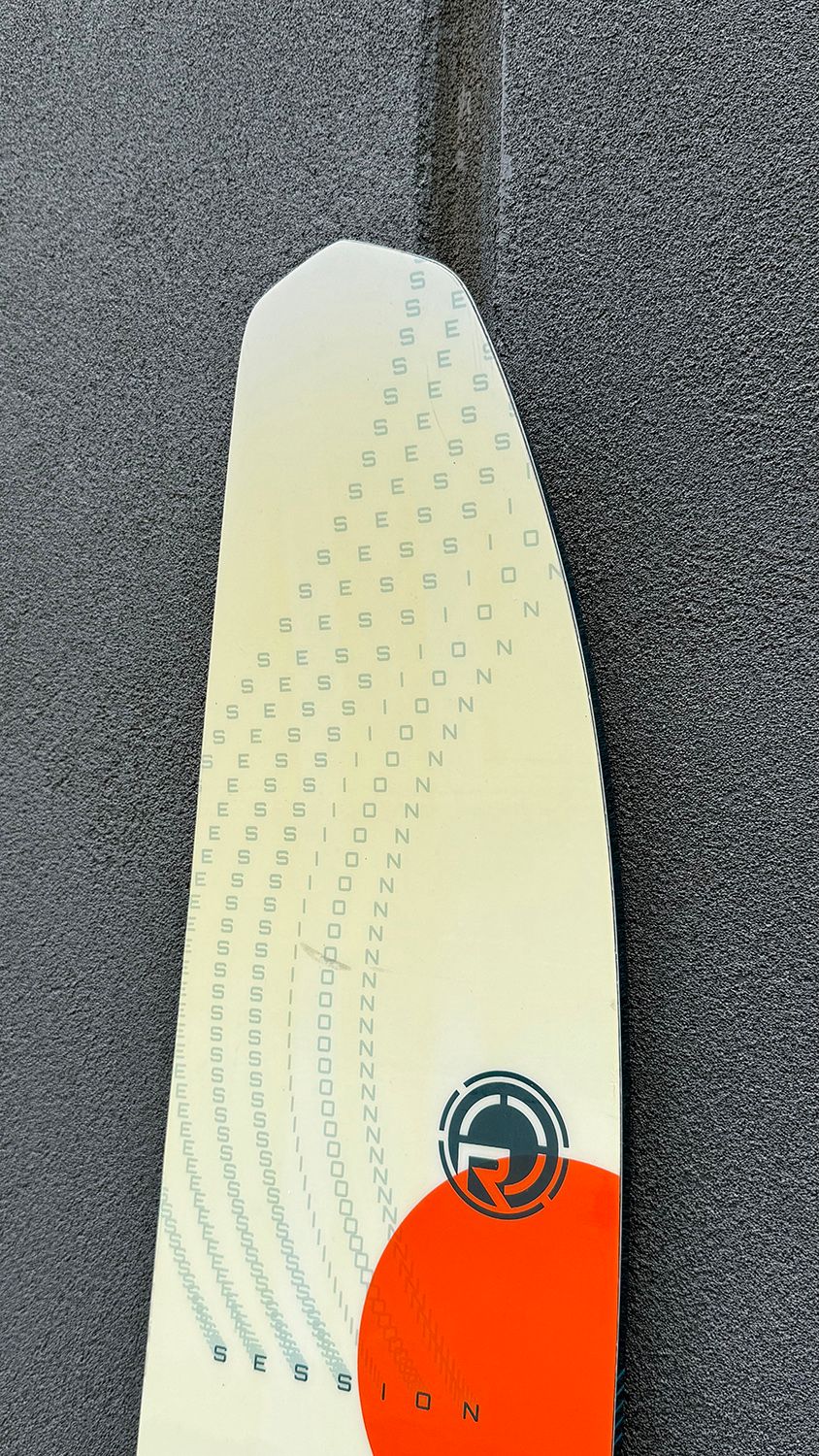 2024 Radar Mens Session 69" (Used). Faded/yellowing marks on top of ski, mostly at rear of ski. Ski is in very good condition otherwise. No other obvious marks.