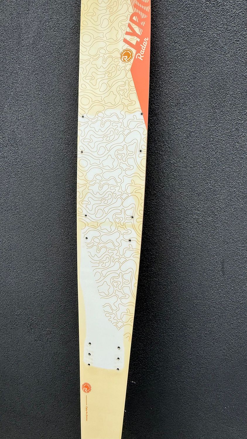 2024 Radar Lyric 65, well used ex demo. This ski has obviously seen some sun, with a fair bit of discolouration. Unfortunately just the result of this top sheet, the ski is otherwise is great skiable condition.