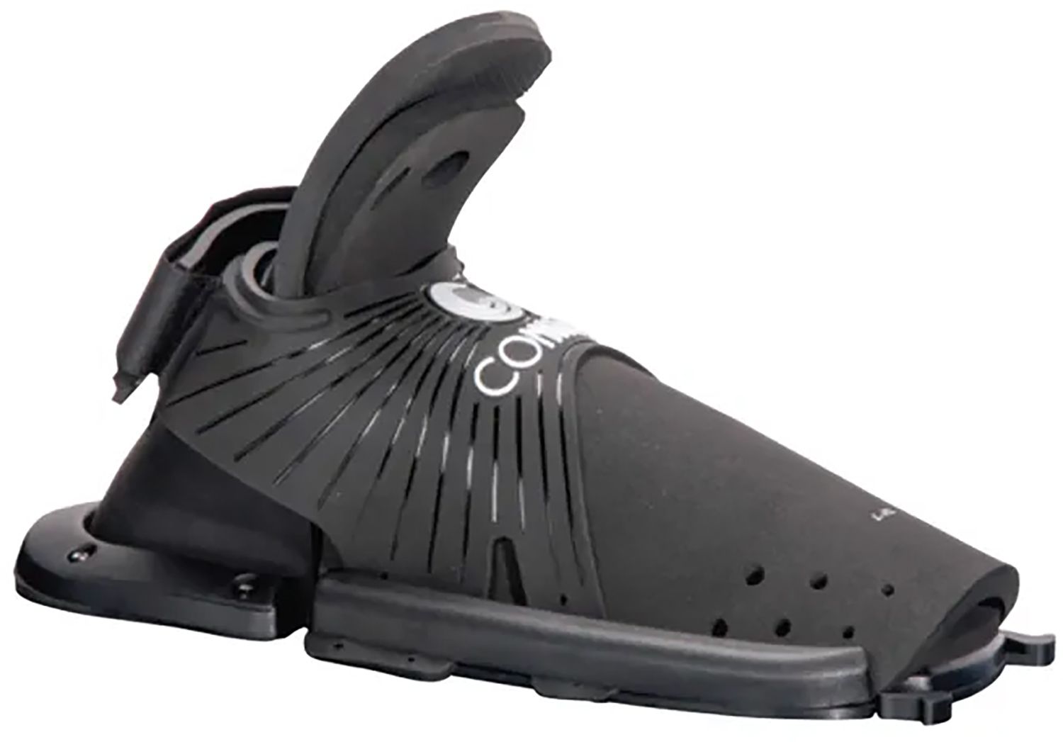 - REAR TOE PLATES: Rear toe plates are available in adjustable or fixed styles. Adjustable RTP’s are one-size-fits-all and feature a lace or BOA system to cater for all foot sizes up to US 14. Fixed RTP’s are made of rubber and are available in specific US shoe sizes with aluminium plates. Hybrid rear toe plates (HRT’s) combine the ankle support of a full boot with the flexibility of a RTP. HRTs are best for skiers who deep water starts with two feet in and are looking to bridge the gap between a full boot and traditional RTP.
