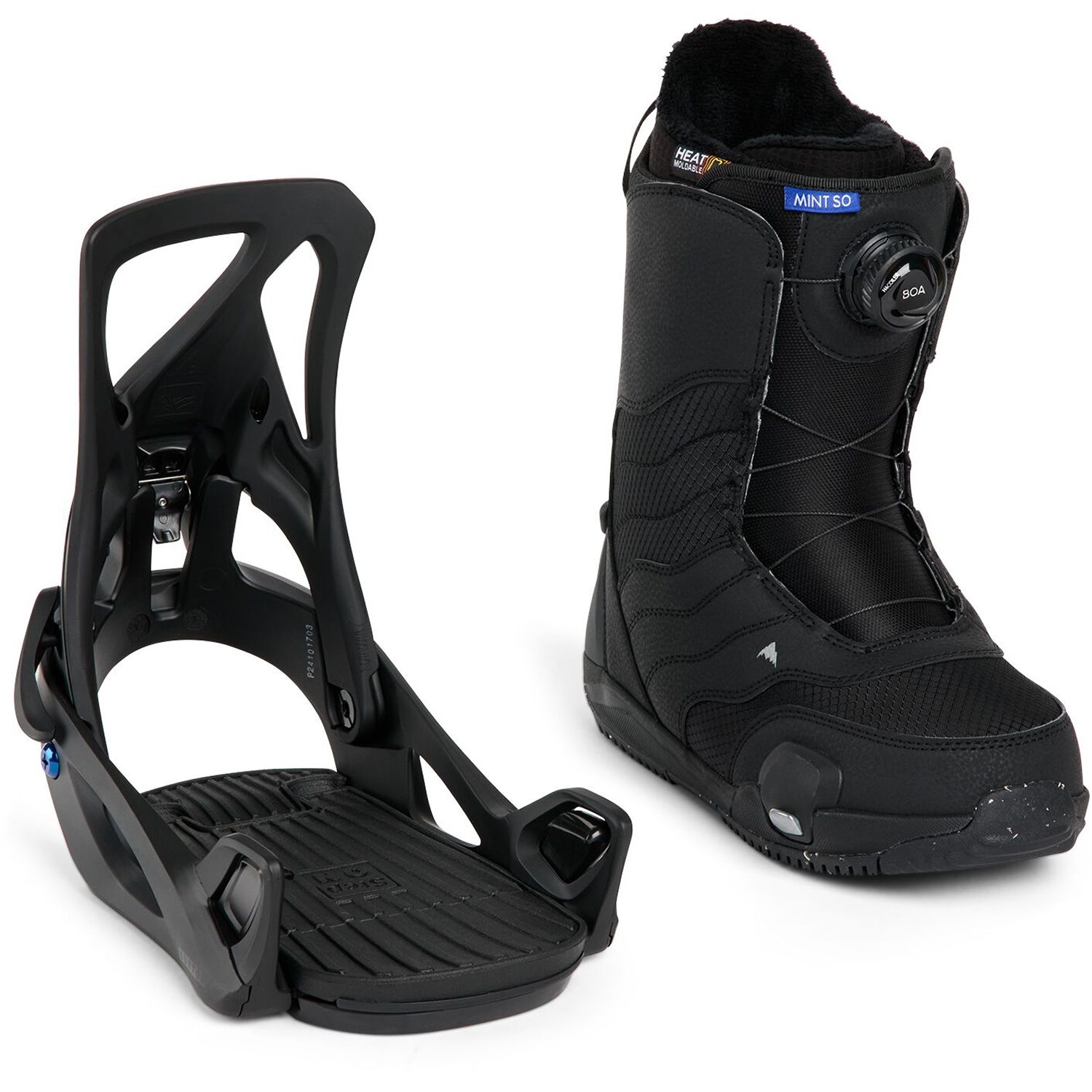 All your Step On® needs in one grab and go combination. It's never been simpler to Step On and ride. The women's Burton Step On® boots and bindings package is the grab-and-go Step On set-up that will help you push your skills across the mountain or in the park. The Step On Re:Flex bindings are universally compatible, and the micro-adjustable precision fit with the BOA single dial configuration on the Mint Step On boots provides customizable comfort. For a simple and efficient way to start riding Step On, look no further than this boots and bindings combo.