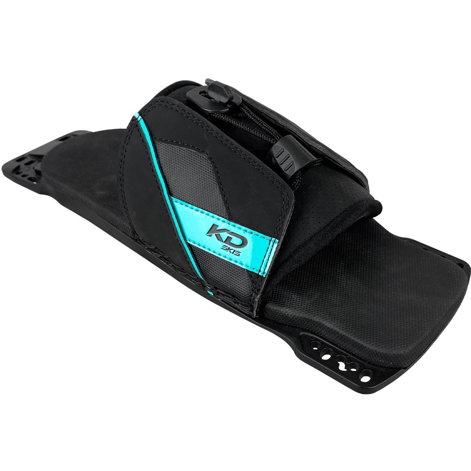 KD adjustable RTP. Utilizing a floating tongue design allows a variety of foot shapes to fit comfortably into the one sized rear toe. An extended overlay and single lace system locks the foot into place, providing maximum control. An all new scalloped foot bed and Lycra lined inner give comfort and support whether crossing the wakes for the first time or finishing off that shortline pass you have been dreaming about all season.