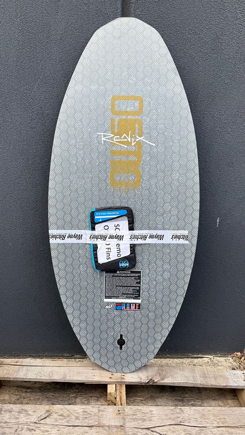 2025 H.O.M.E. Ronix Osmo 4'3, perfect for someone who wants a high end skim board, this thing absolutely rips. There was a small imperfection on the nose from factory, this has been sealed and wont affect the board at all, but you can see the colour difference. Fin included.