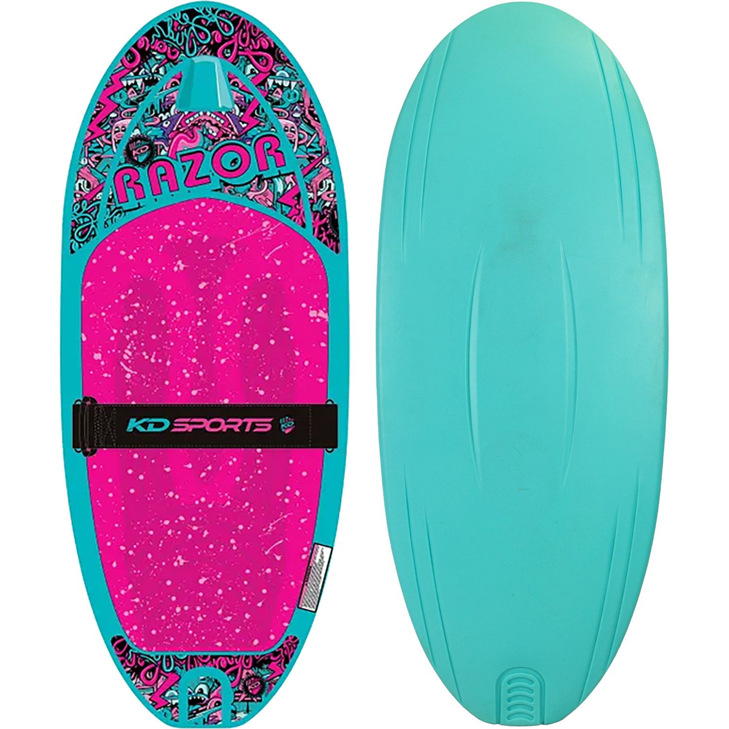 The KD Razor is the epitome of kneeboard technology, featuring the classic spoon shape that gives it a smooth, comfortable ride with lightning edge transitions. Unlike the competition the Razor isn't some chunky board that bounces down the lake, it's thin and lightweight profile glides across the water giving amazing pop off the wake. KD have outfitted the Razor with its bomb proof fixed hook and ultra cushioned EVA pad that makes it the perfect board to have in the boat for riders of all ages and skill levels!
