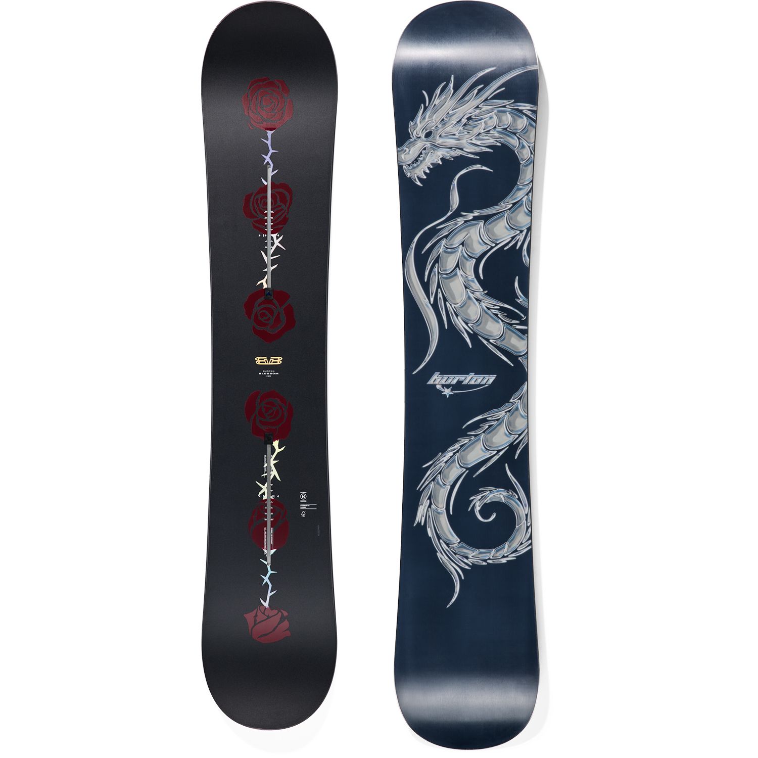 A collaboration by team riders Rob Roethler, Zeb Powell, LJ Henriquez, and Brian Rice, the Blossom Dragon evokes a bold, moody theme that reflects each rider's story. The contrast between base and topsheet creates dynamic tension much like the Blossom pushes you to express your individuality.