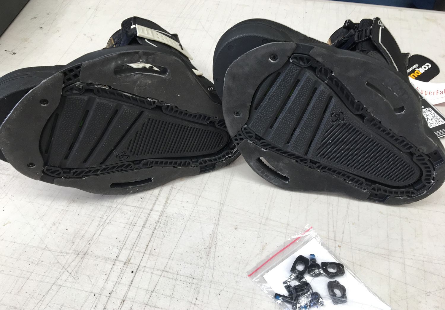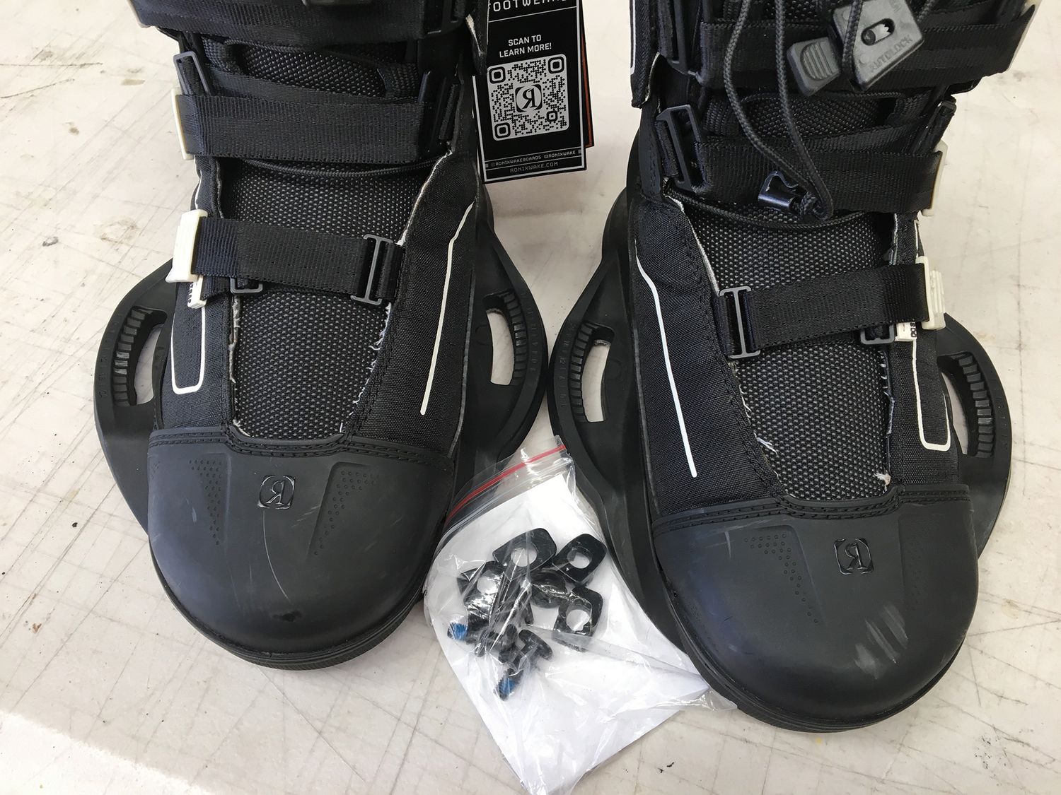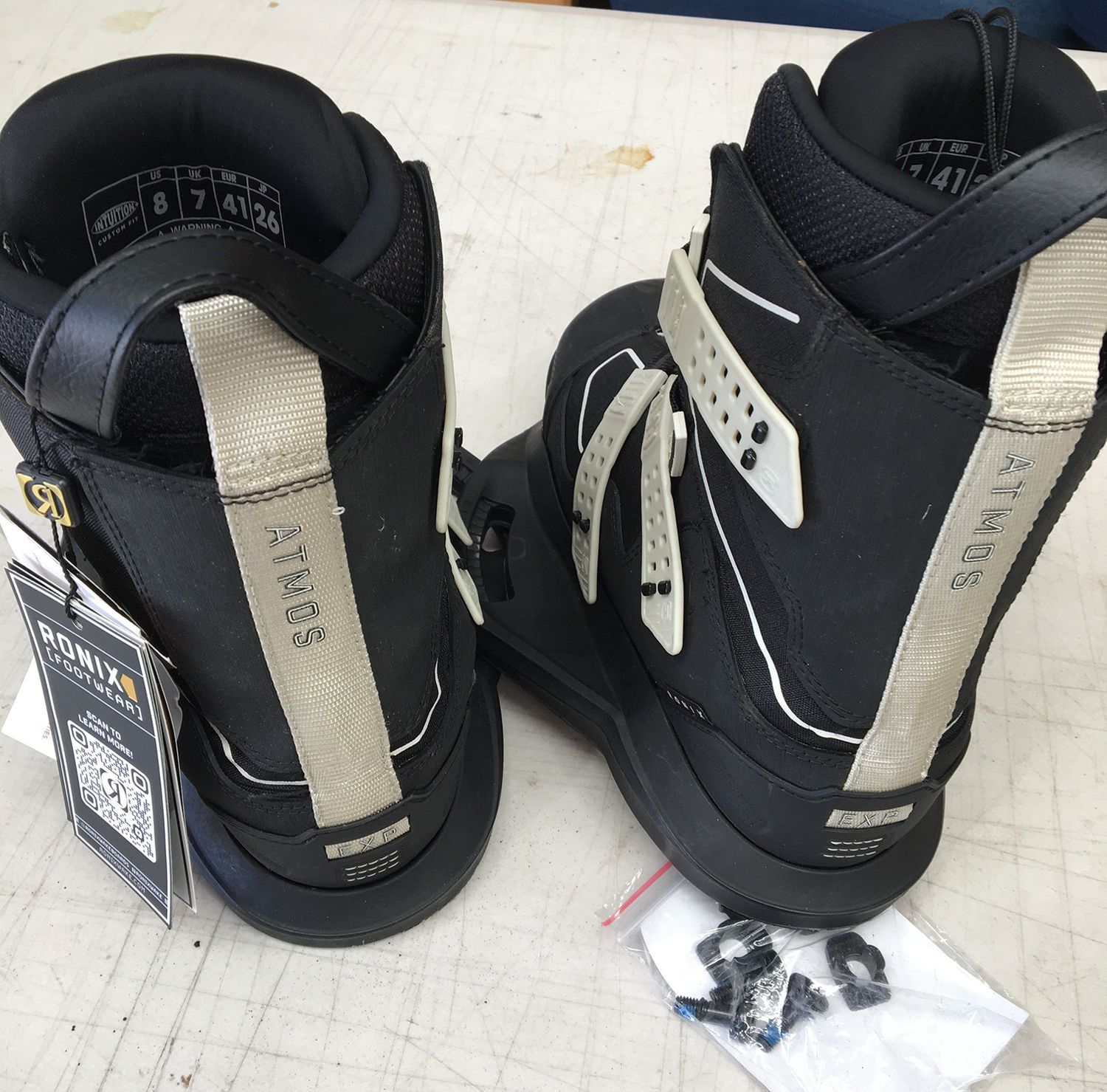 Ronix Atmos - Kinetik Boot Used Size 8. These guys are a set of used Atmos Shells with NEW kinetik liners. The bolt fit kit is new. The Atmos shells look like they've had only a few demo days use. They have a few scuffs here and there.