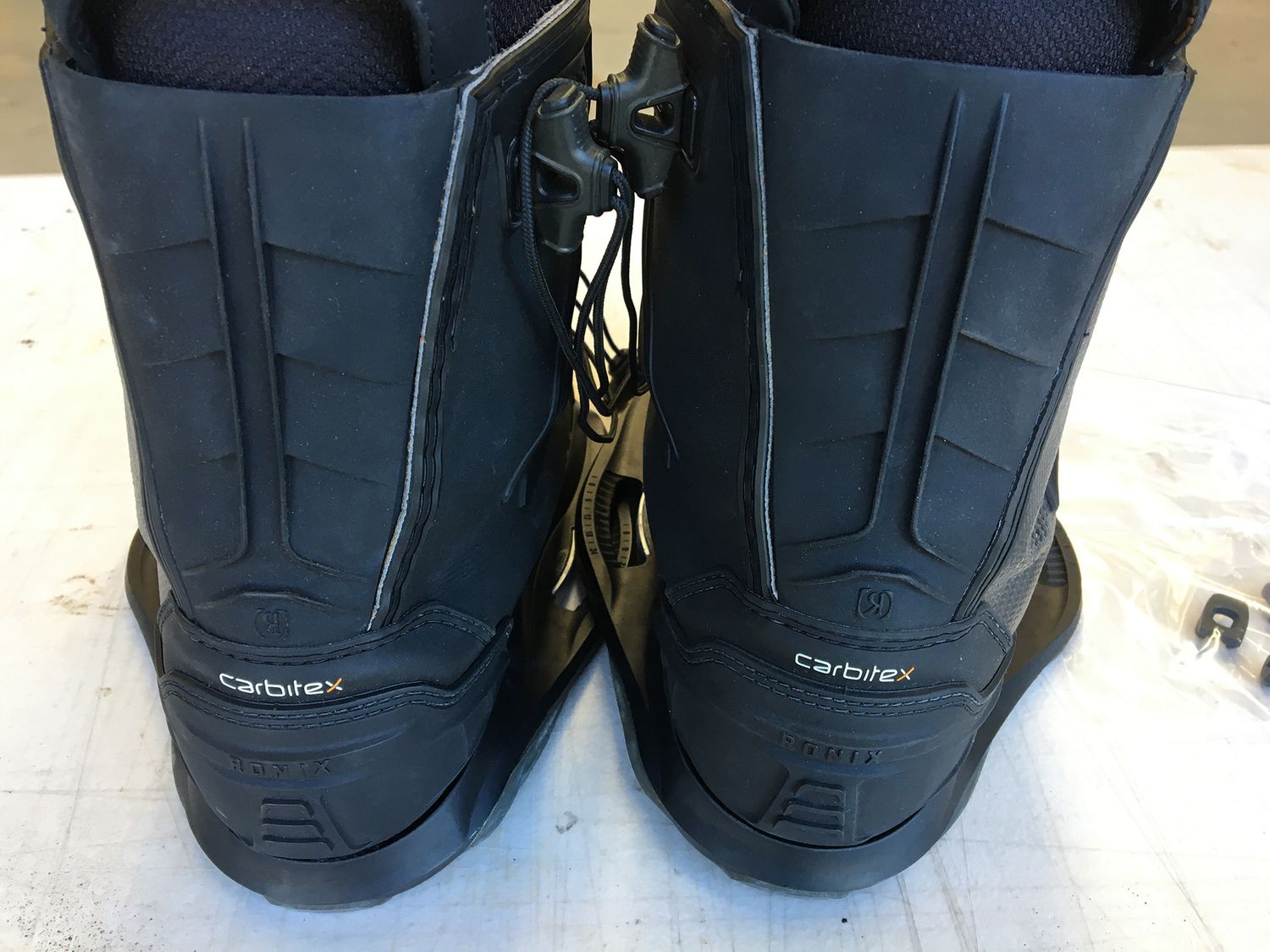 2024 Ronix One Carbitex Boots Size 9 - Used . These guys have had some use and are a bit creased here and there. Some of the creasing has cracked through in high flex-stress areas, but they still have a lot of life left in them