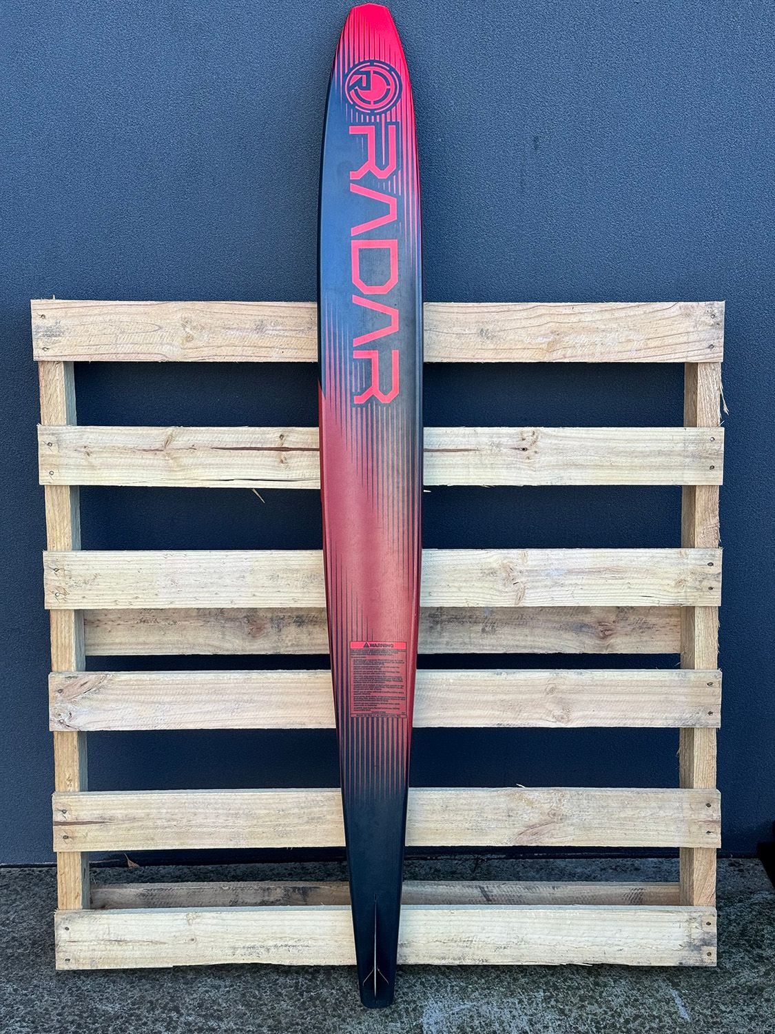 2026 EX DEMO Radar Vapor Pro Build 67. This ski is in very good condition, for a used ski. Only noticeable scuffs and marks are where the boot plate has been, and a little paint rubbed off the fin, as shown in the photos. Otherwise and epic ski, ready for a swerve!