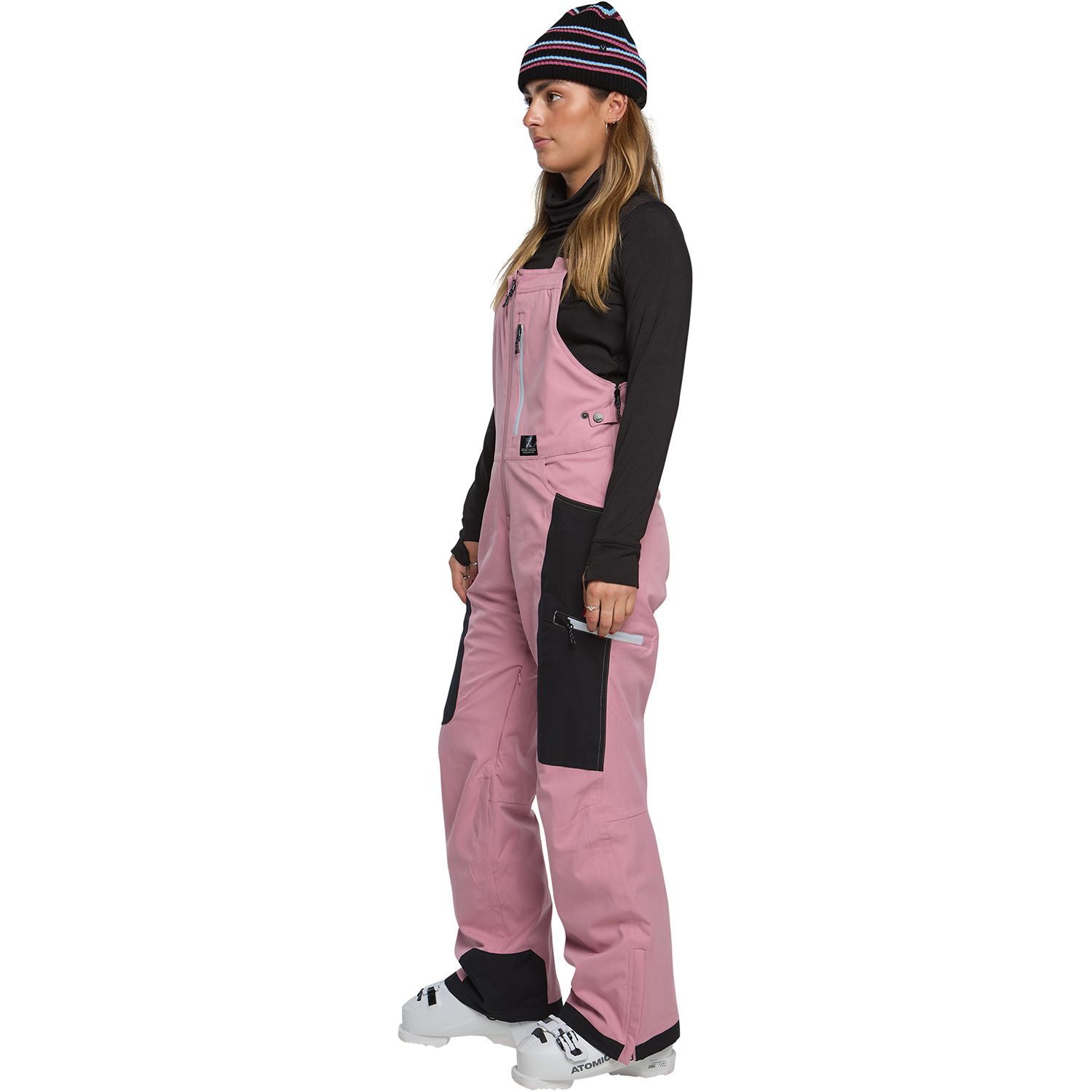 - GORE-TEX: Gore-Tex is a high-performance fabric technology that is commonly used in snow bib pants and other outdoor gear. It is a waterproof and breathable fabric that is designed to provide protection from the elements while still allowing moisture vapor to escape. The Gore-Tex membrane is made up of microscopic pores that are much smaller than water droplets, but larger than water vapor molecules. This means that water is not able to penetrate the membrane from the outside, but sweat and other moisture vapor can escape from the inside, keeping the wearer dry and comfortable. Gore-Tex is designed to be lightweight and packable, making it a popular choice for backcountry skiers and snowboarders. In addition to its waterproof and breathable properties, Gore-Tex is also windproof, which helps to provide extra protection from the elements.