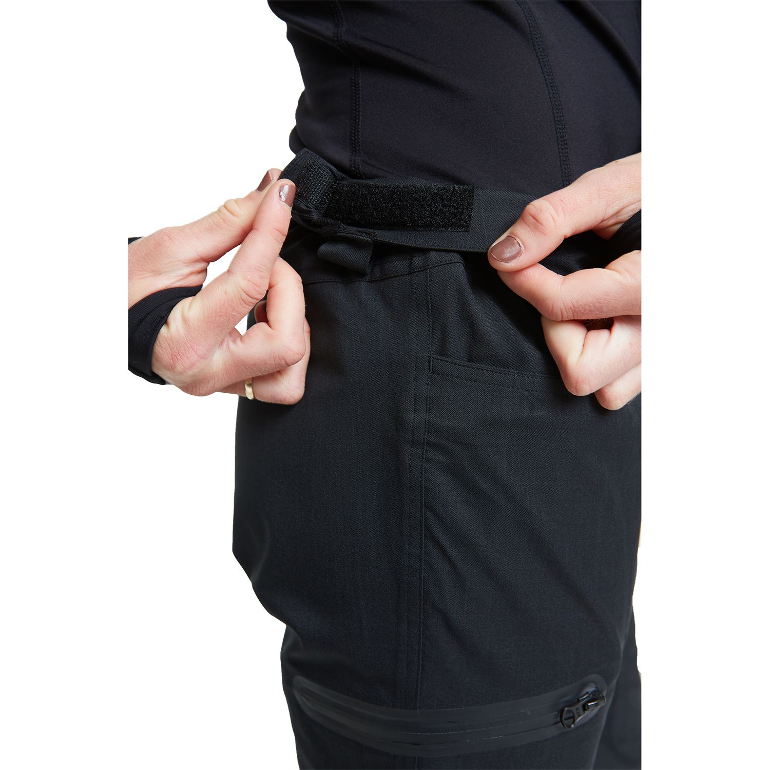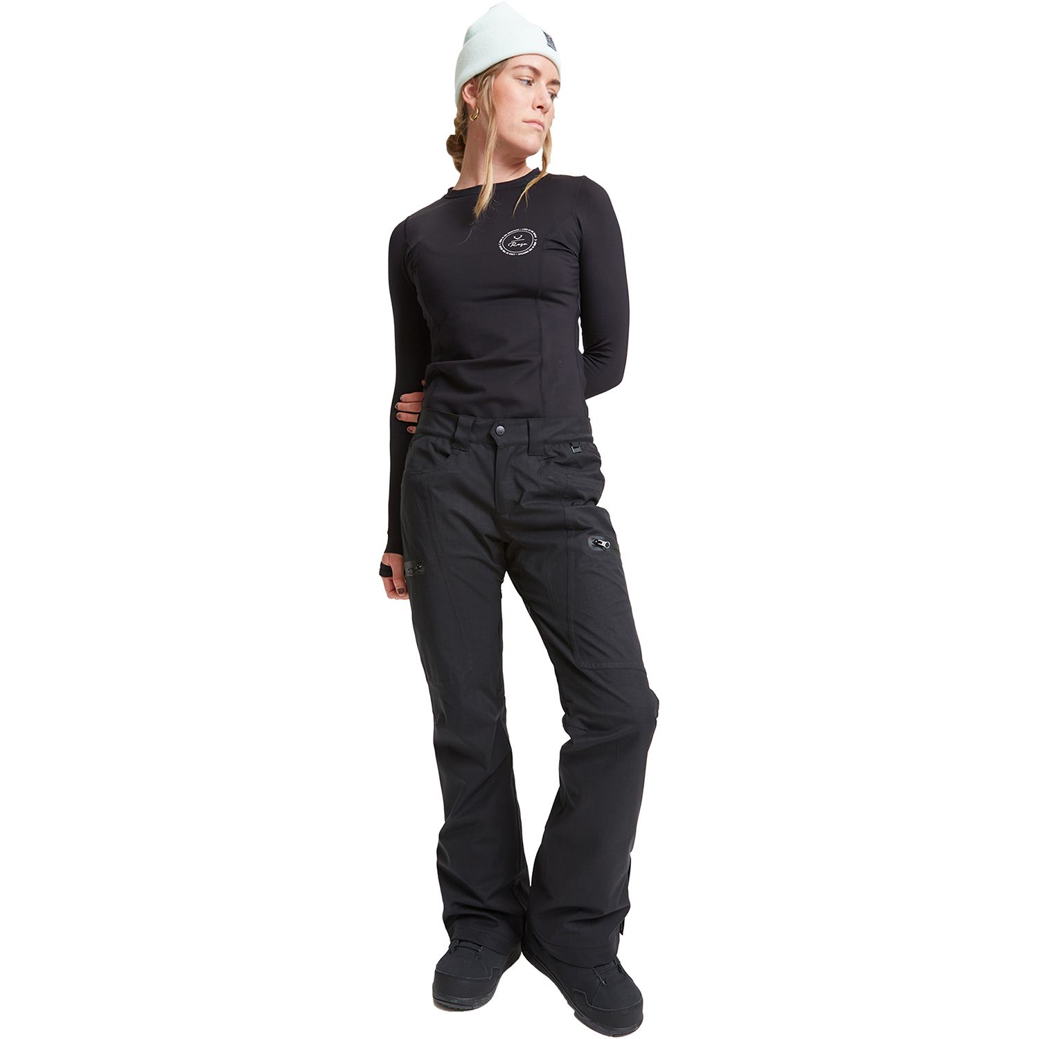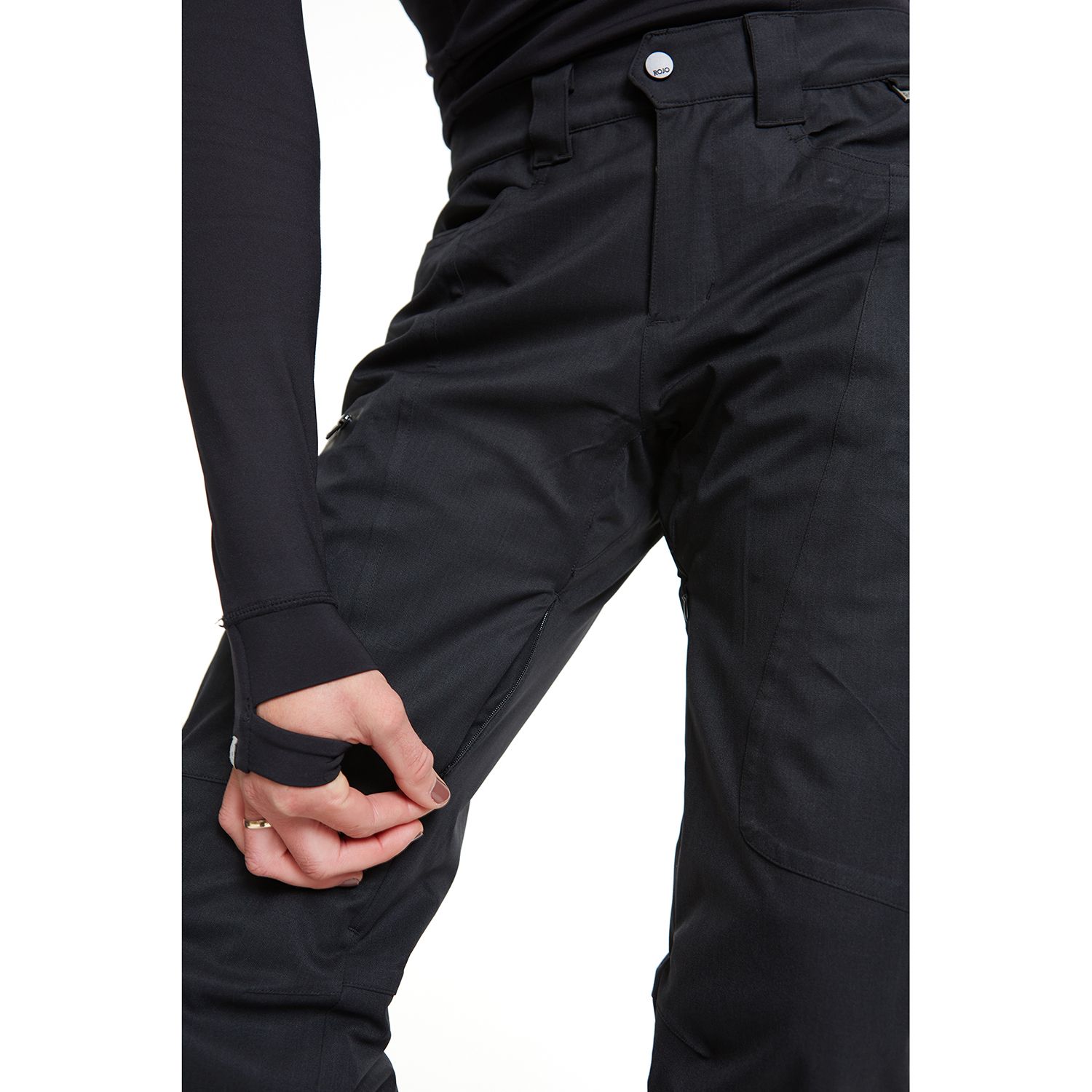 - GORE-TEX: Gore-Tex is a high-performance fabric technology that is commonly used in snow pants and other outdoor gear. It is a waterproof and breathable fabric that is designed to provide protection from the elements while still allowing moisture vapor to escape. The Gore-Tex membrane is made up of microscopic pores that are much smaller than water droplets, but larger than water vapor molecules. This means that water is not able to penetrate the membrane from the outside, but sweat and other moisture vapor can escape from the inside, keeping the wearer dry and comfortable. Gore-Tex is designed to be lightweight and packable, making it a popular choice for backcountry skiers and snowboarders. In addition to its waterproof and breathable properties, Gore-Tex is also windproof, which helps to provide extra protection from the elements.